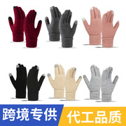 触屏手套女冬季可爱学生骑行保暖防寒韩版加绒加厚五指针织手套