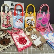 手拎包女韩版新款可爱卡通针织小方包百搭迷你便携单肩斜挎手机包