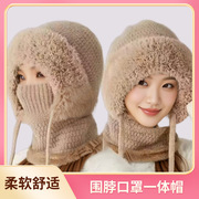 冬季户外骑行加绒保暖针织毛线帽女士帽子口罩围脖连体套头帽
