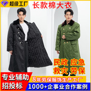 民政应急救灾军绿色大衣冬季多功能长款藏青色保安门卫防寒棉大衣