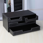 小四抽文件柜多功能办公桌面票据凭证收纳柜皮革创意小物品收纳盒