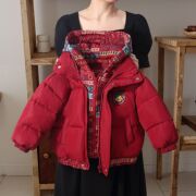 m339红色国风新款冬装新年衣服儿童加厚时尚棉服冬季保暖外套