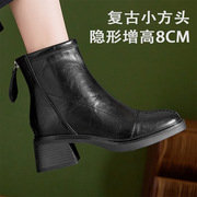 2118隐形内增高8cm方头粗跟短靴女秋冬加绒英伦风复古时装靴子