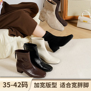 大码粗跟韩系通勤靴女鞋马丁靴秋冬加绒瘦瘦靴后拉链方头时装短靴