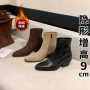 9cm增高尖头短靴2025秋冬新款加绒靴子休闲瘦瘦靴粗跟百搭马丁靴