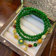 原创设计万能扣挂钩复古祖母绿玛项链一款多戴可拆卸绿玉髓多挂链