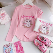 女童秋款圆领卡通上衣 儿童莱卡棉印花长袖t恤 宝宝休闲打底卫衣