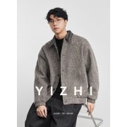 亦止『暖绒』假两件格子开衫加绒夹克秋冬翻领混纺呢料大衣外套潮