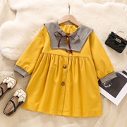 77113女童春秋款格子大翻领风衣春季新款儿童女宝宝春洋气外风衣