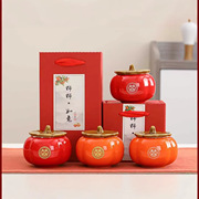 柿柿如意陶瓷茶罐密封喜柿糖果盒茶饼婚庆伴手礼礼盒装