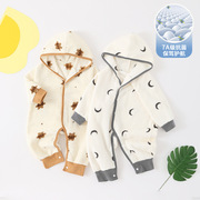 婴儿连体衣春秋季保暖连帽哈衣宝宝加厚爬服立体小熊爬爬服