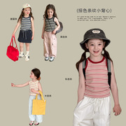 艾摩贝贝童装儿童小背心女童韩系精棉弹力坑条撞色彩条纹背心上衣