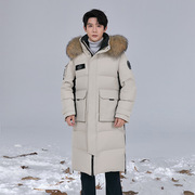 羽绒服男加长款过膝2024冬季新款90白鹅绒加厚大毛领工装极寒系列