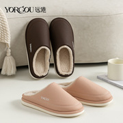 远港2023新款防水皮拖男女秋冬季居家用保暖加绒室内防滑棉拖鞋