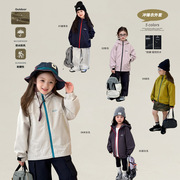 儿童三防面料山系冲锋衣男女童韩版宽松洋气撞色户外休闲连帽外套