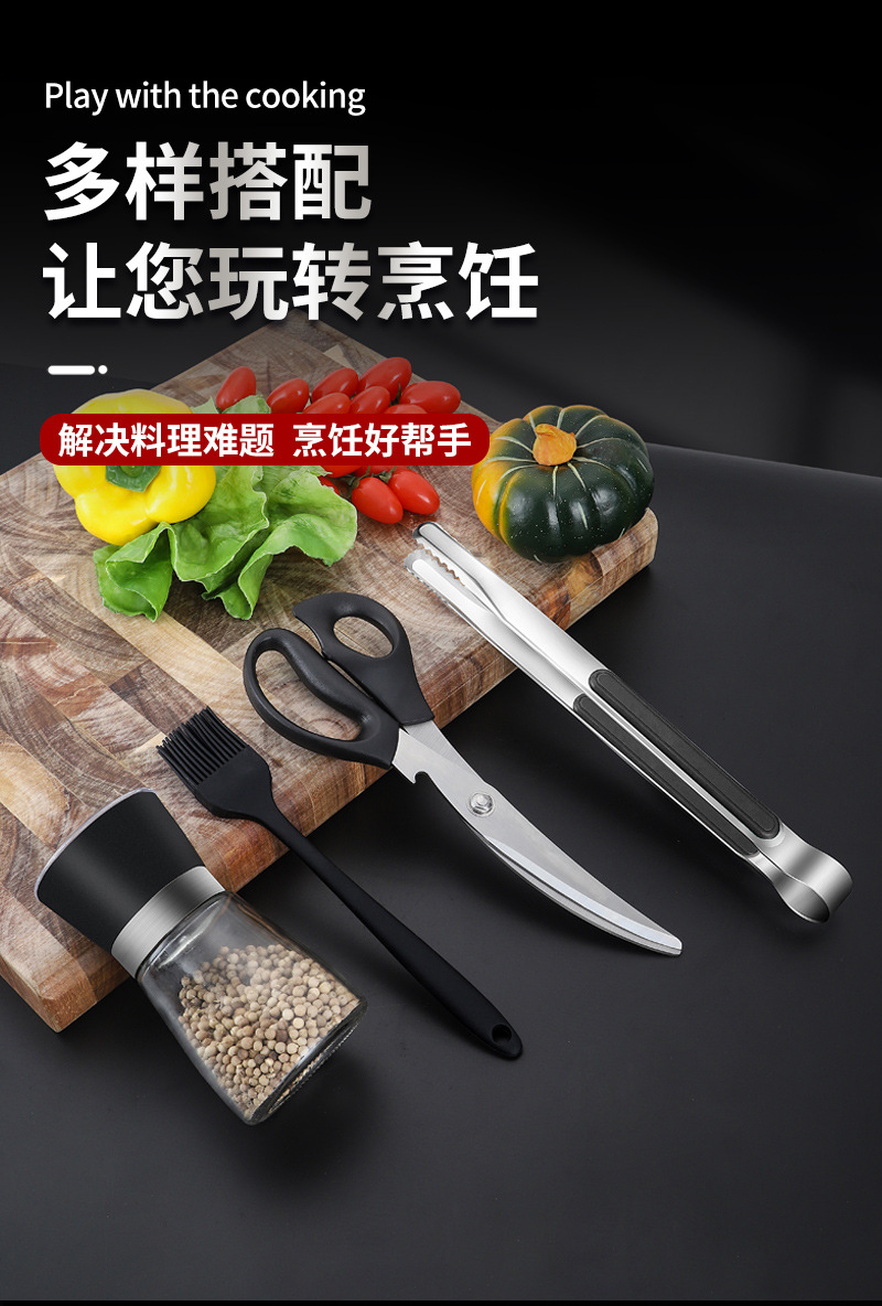 韩式烤肉四件套烤肉剪刀夹子调味瓶研磨器食品夹烧烤小工具套装