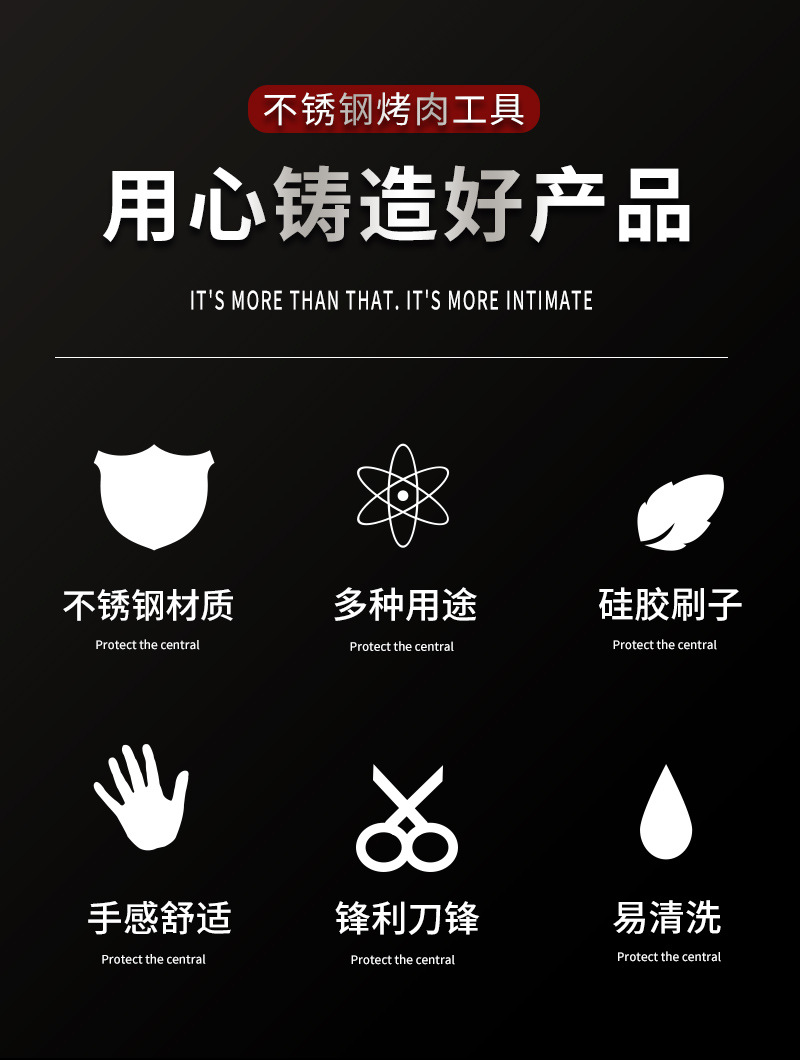 不锈钢花梨木烤具4件套户外BBQ工具 木柄烤铲叉夹刷 野外烧烤工具