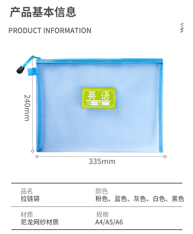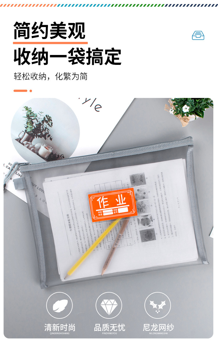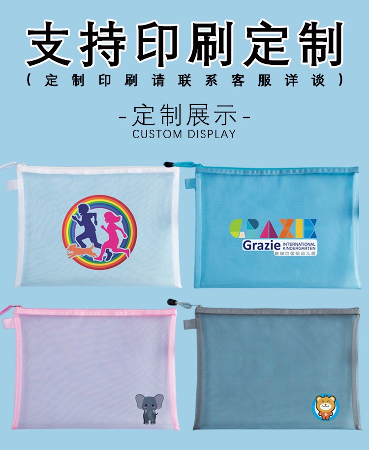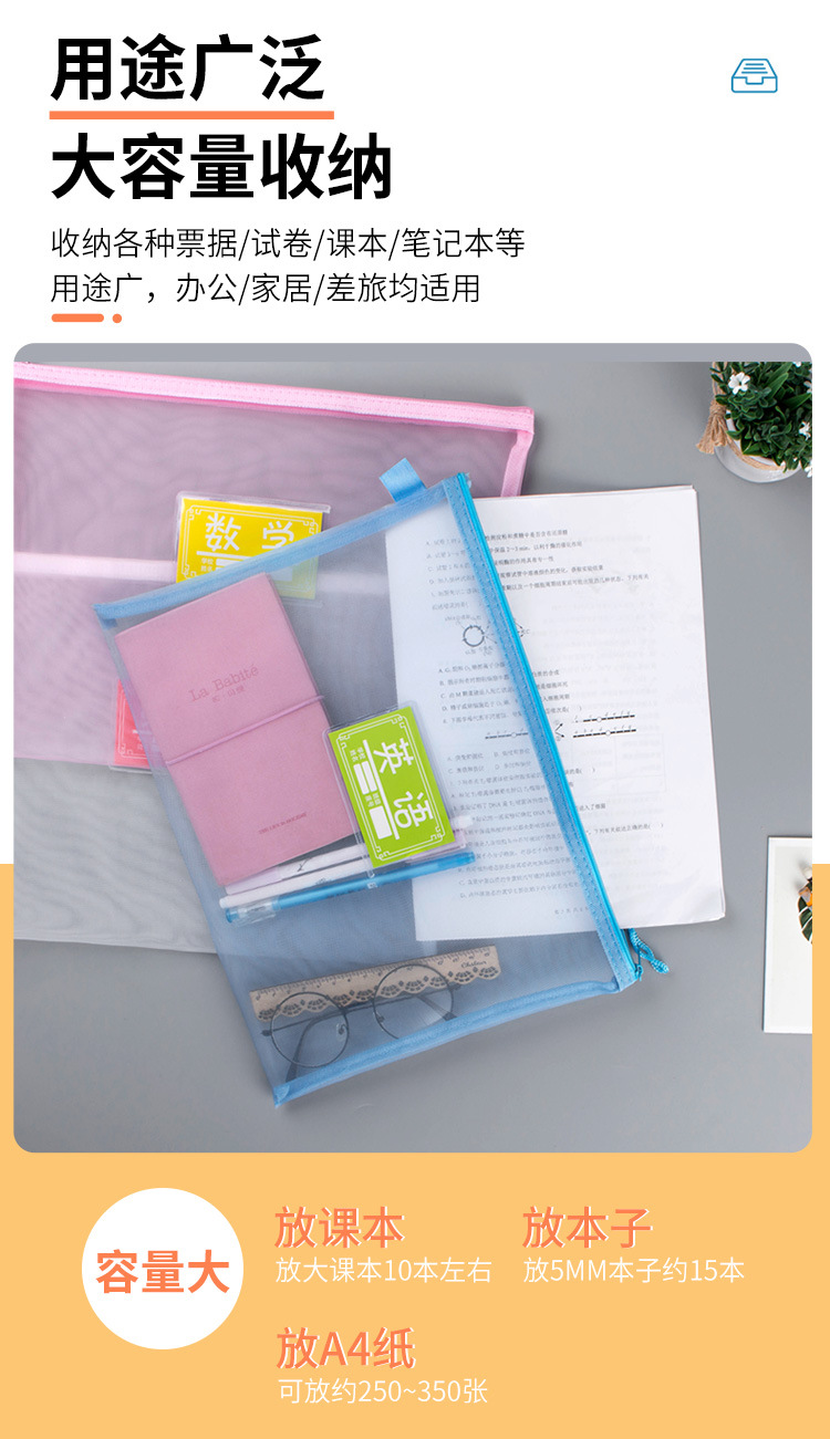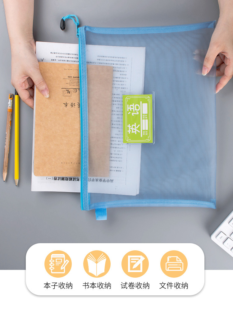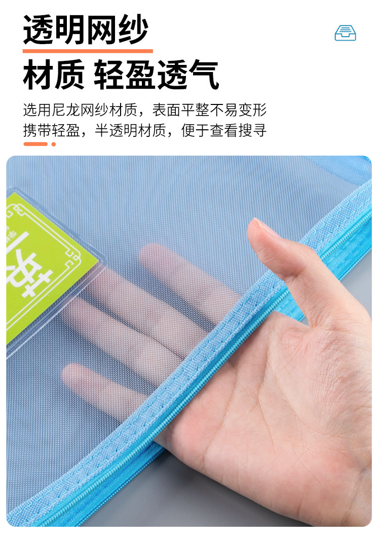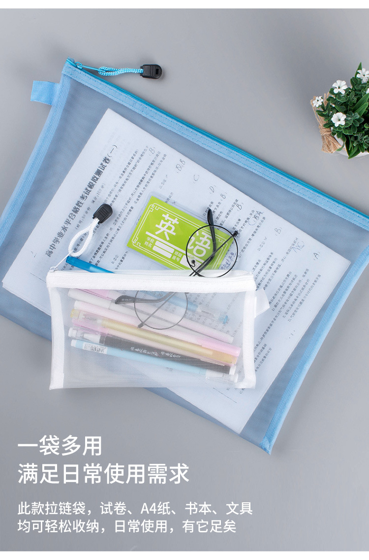 A4A5透明尼龙网纱文件袋拉链试卷资料袋收纳袋办公学生笔袋科目袋