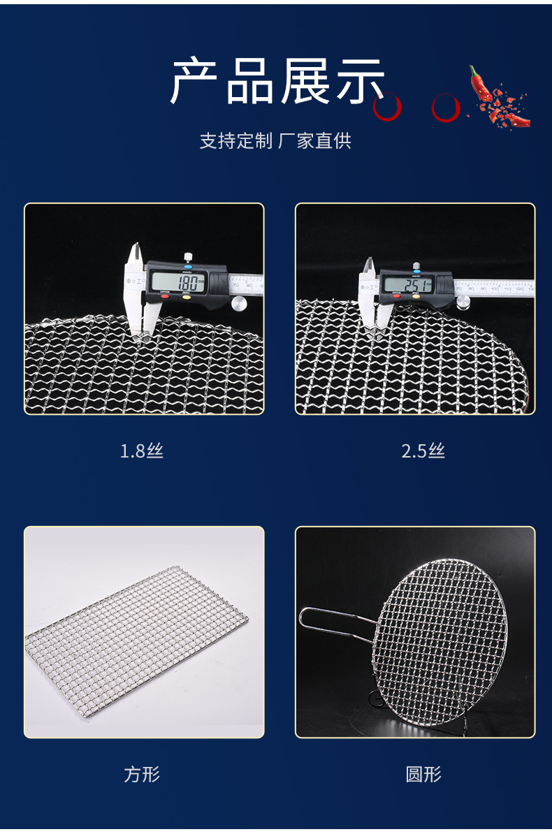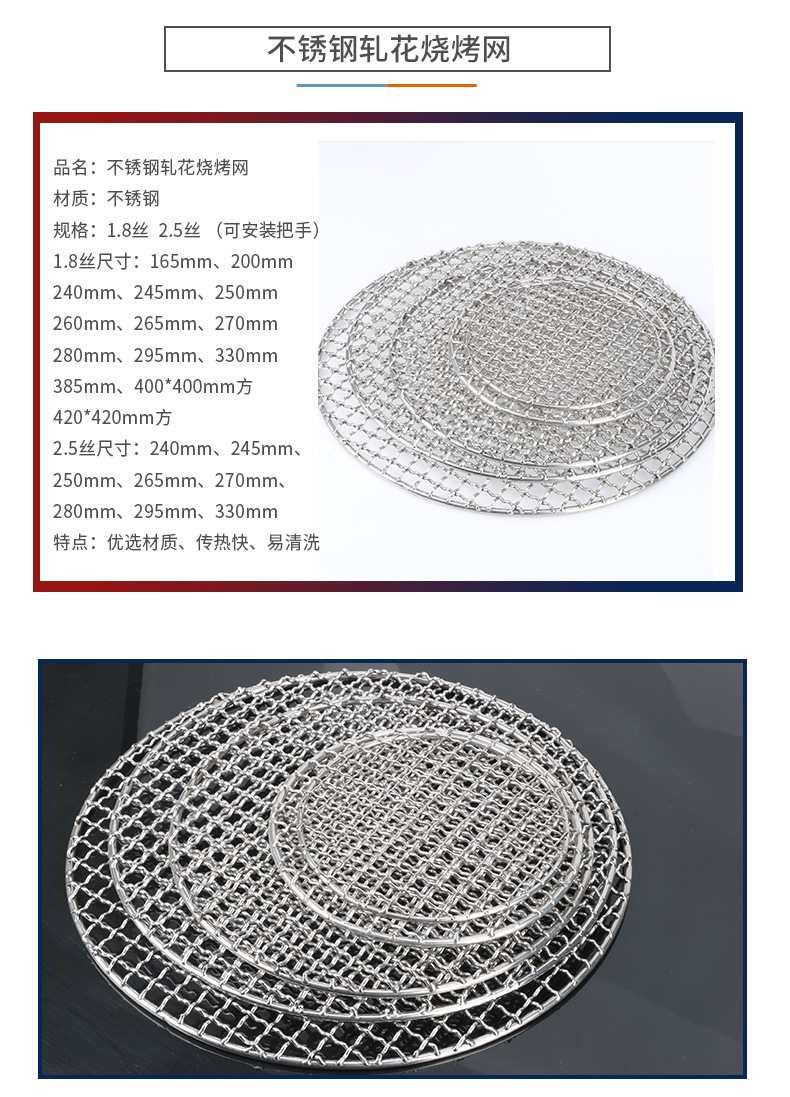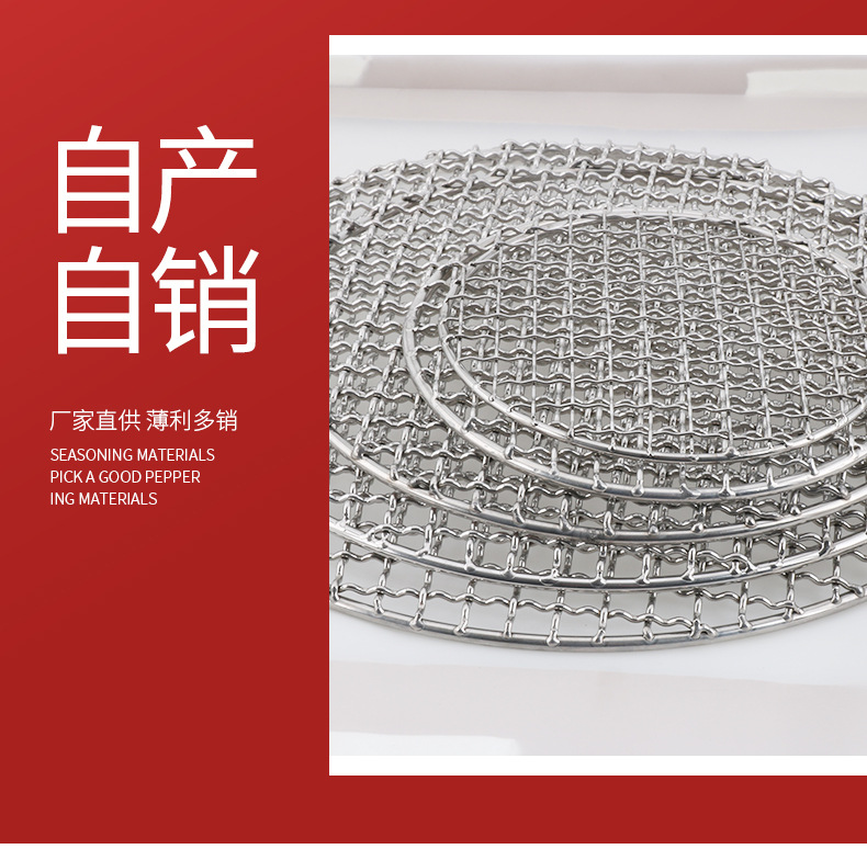 不锈钢烧烤网 厂家圆形烤网轧花烤肉网多种规格十字烧烤篦子