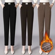 秋冬加绒加厚裤子休闲裤女士裤子松紧高腰宽松大码哈伦裤直筒女裤