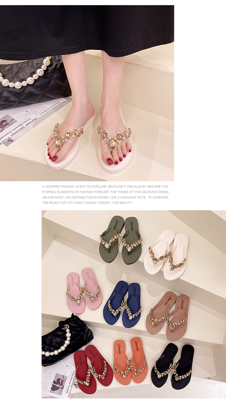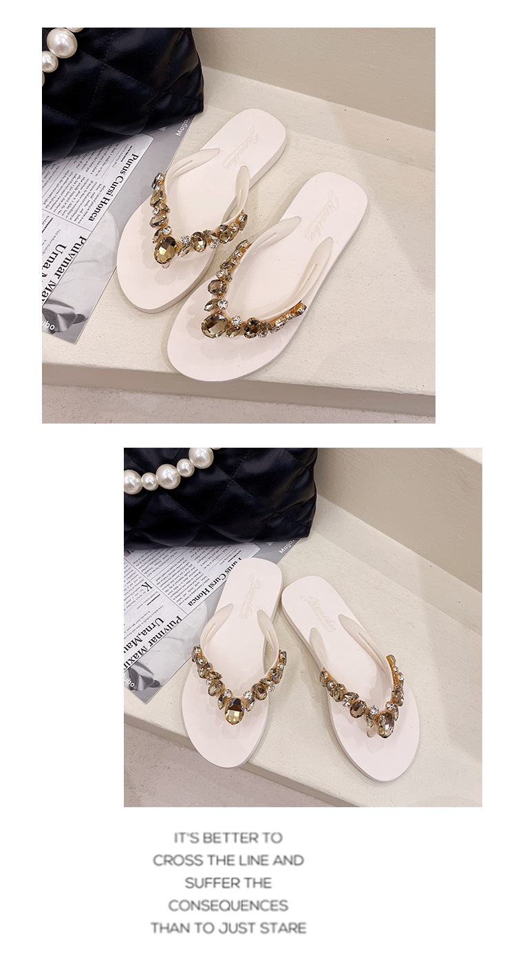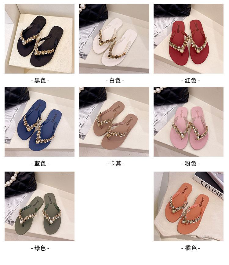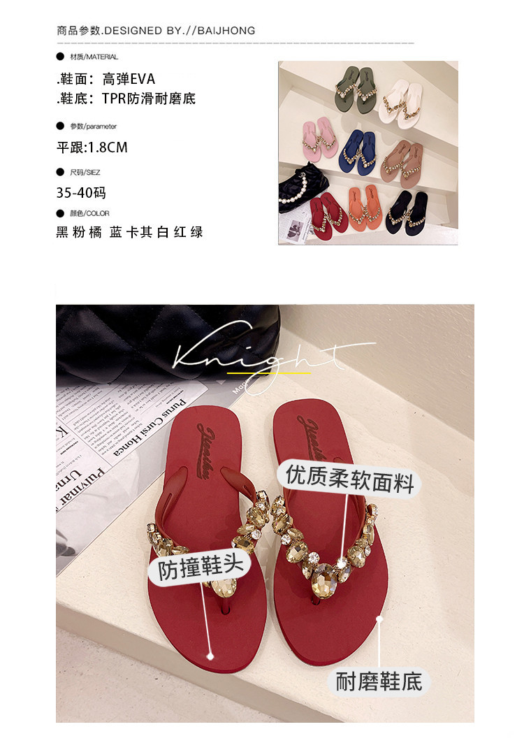2024夏季手工缝钻拖鞋女外穿人字拖平底时尚海边沙滩防滑女凉拖鞋