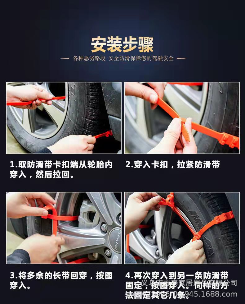 汽车防滑链 轿车轮胎防滑扎带 雪地泥地越野车专用应急脱困带厂家
