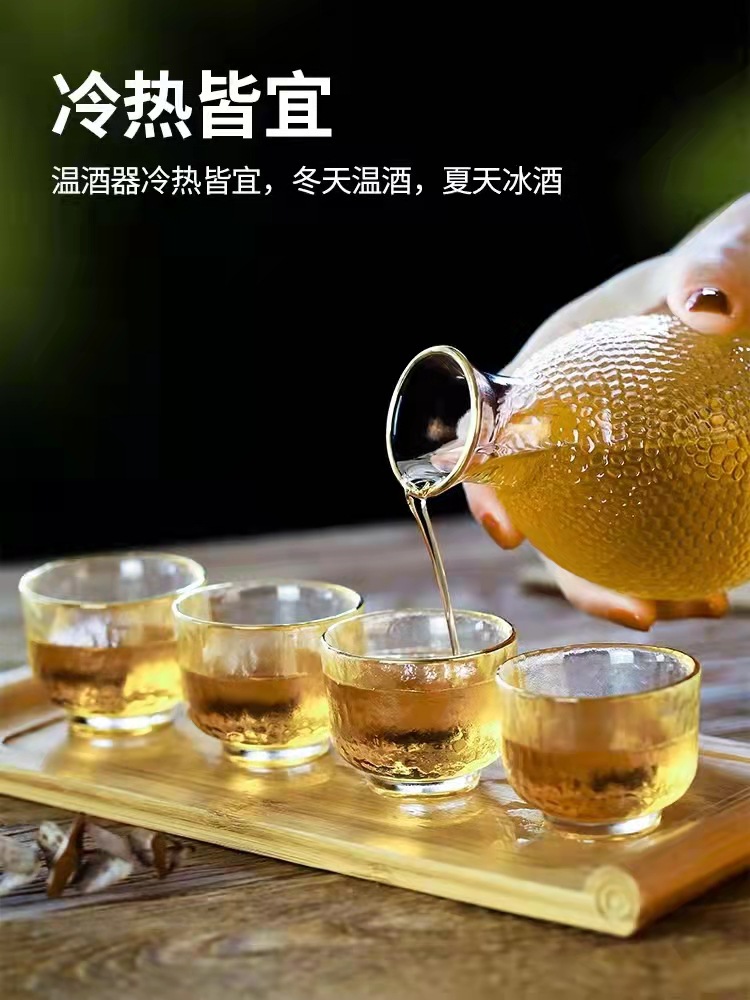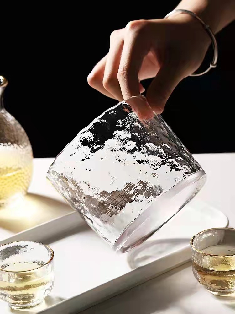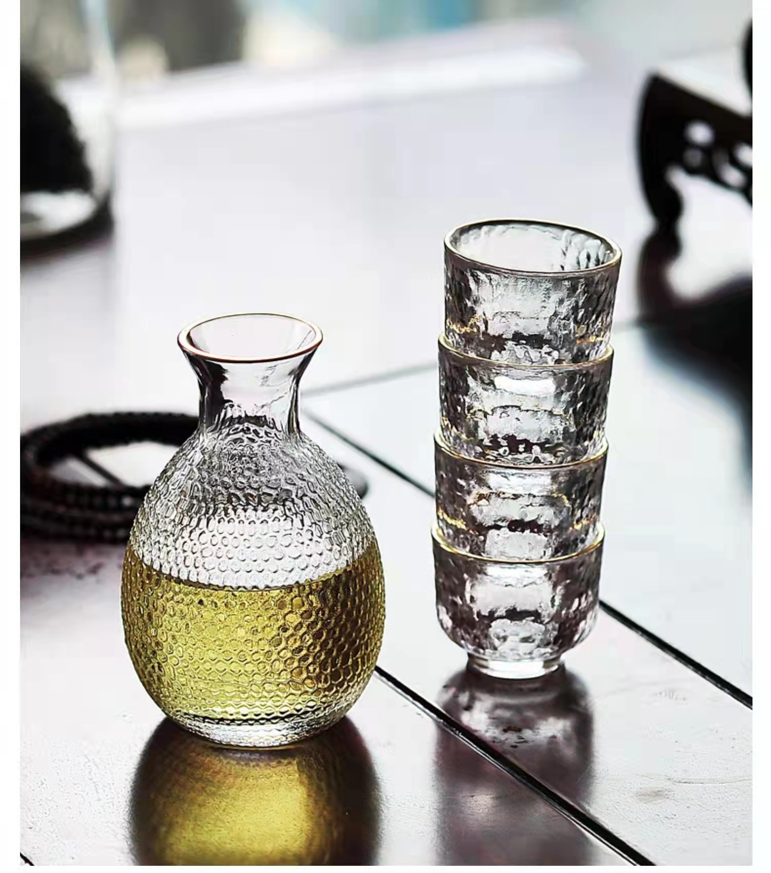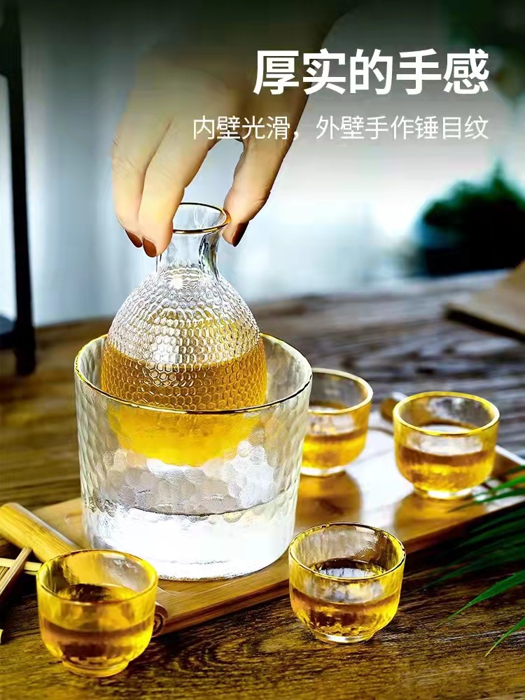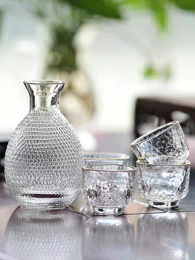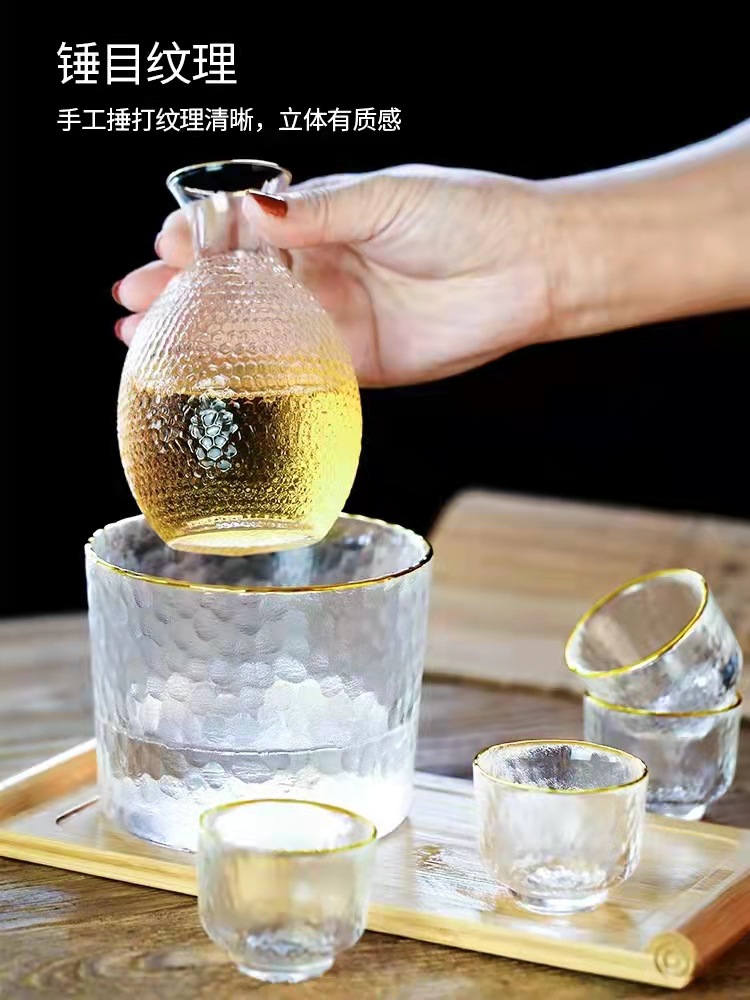 日式清酒壶套装玻璃温酒缸一口白酒杯果酒风家用锤纹礼盒家用酒具