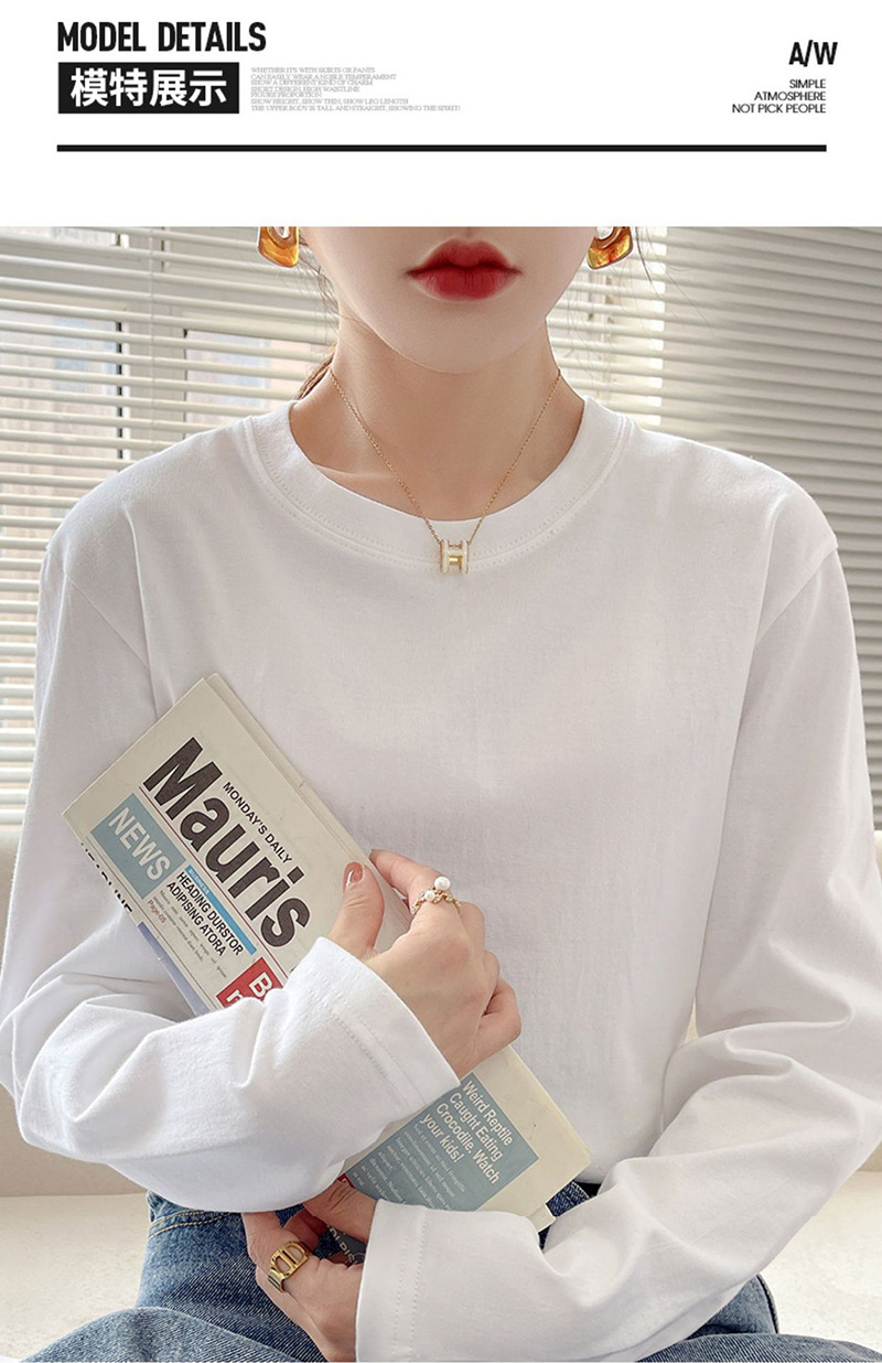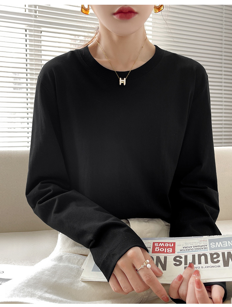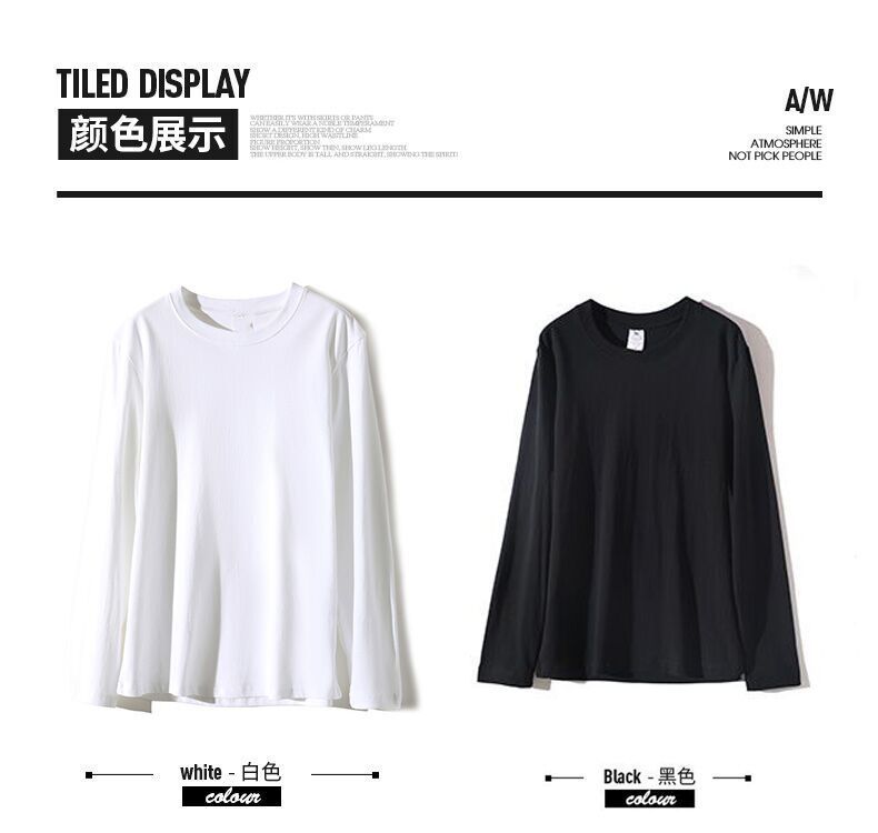 230克重磅纯棉长袖t恤女宽松上衣打底衫纯色百搭男女装t恤内搭