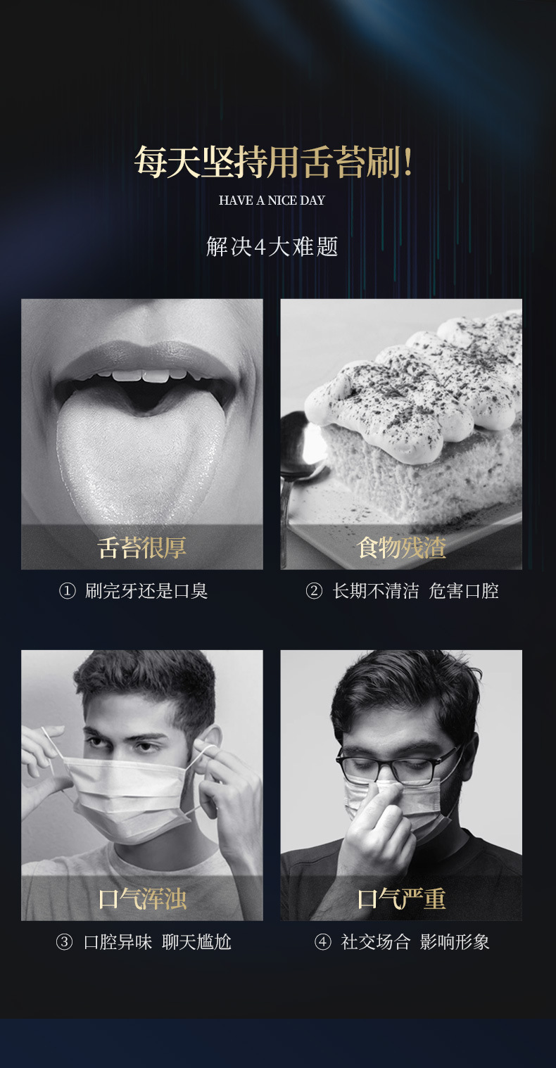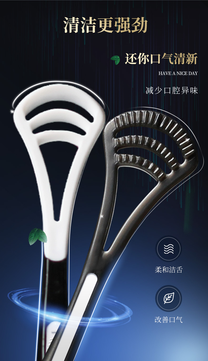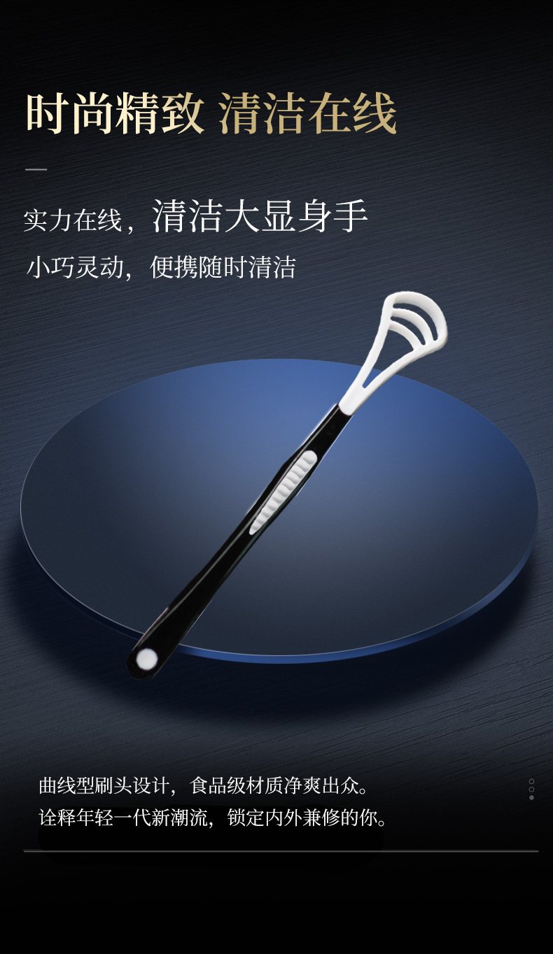 男士舌苔清洁器刮舌器祛口臭舌苔厚白口腔护理黑色舌苔刷独立包装