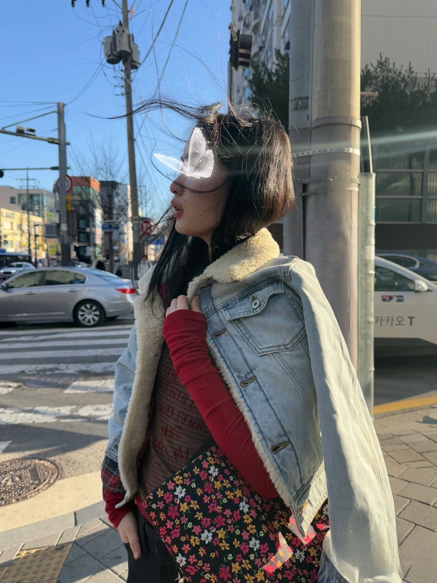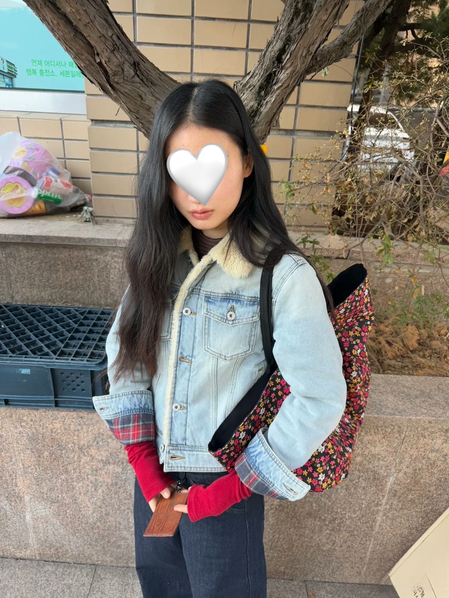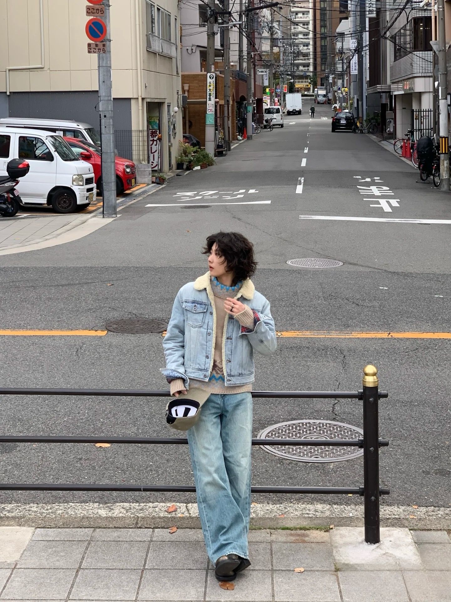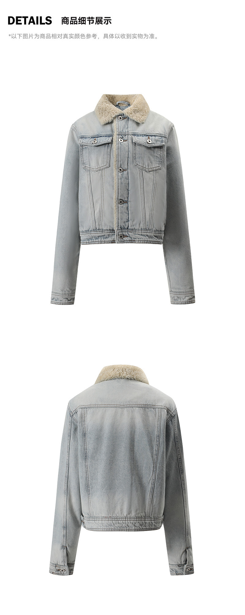 鑫阁秋季复古水洗牛仔外套女设计感拼接蓝色印花翻边袖口新款上衣
