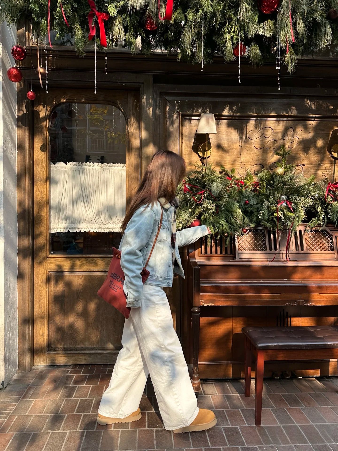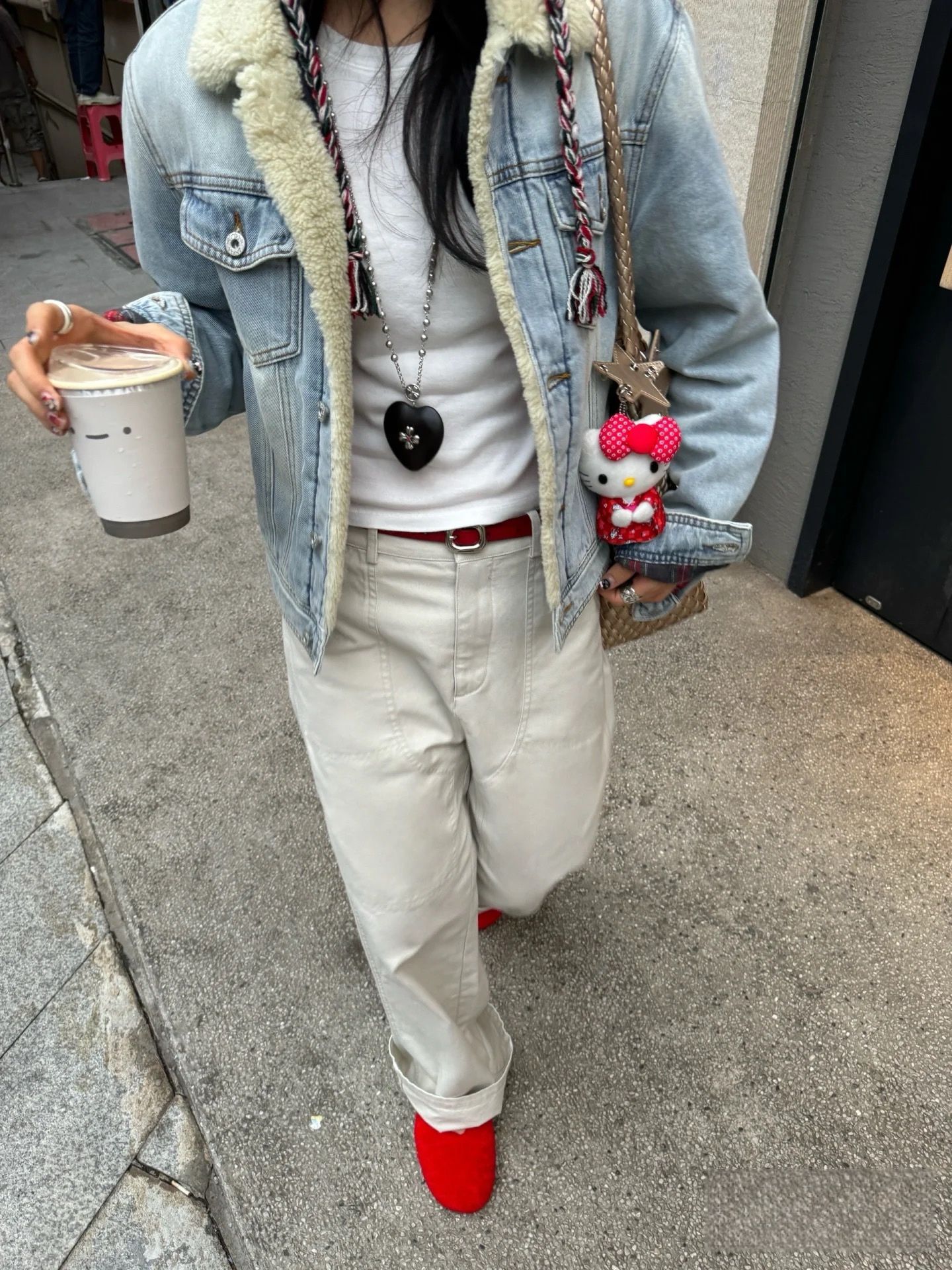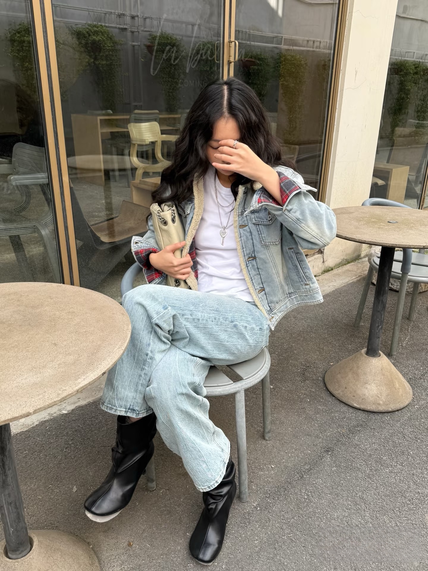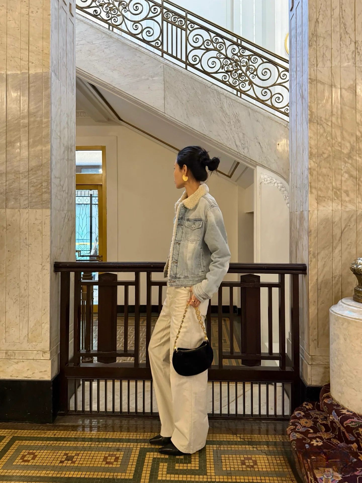 鑫阁秋季复古水洗牛仔外套女设计感拼接蓝色印花翻边袖口新款上衣
