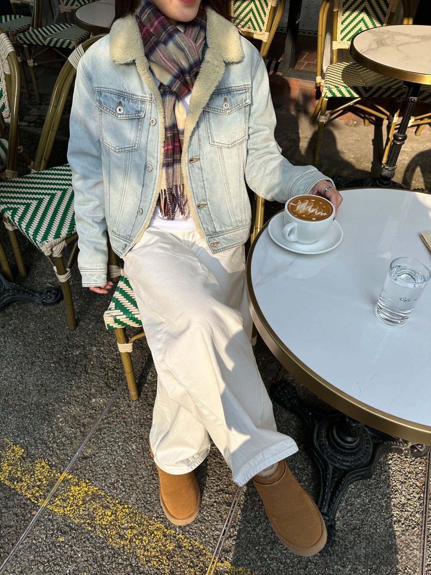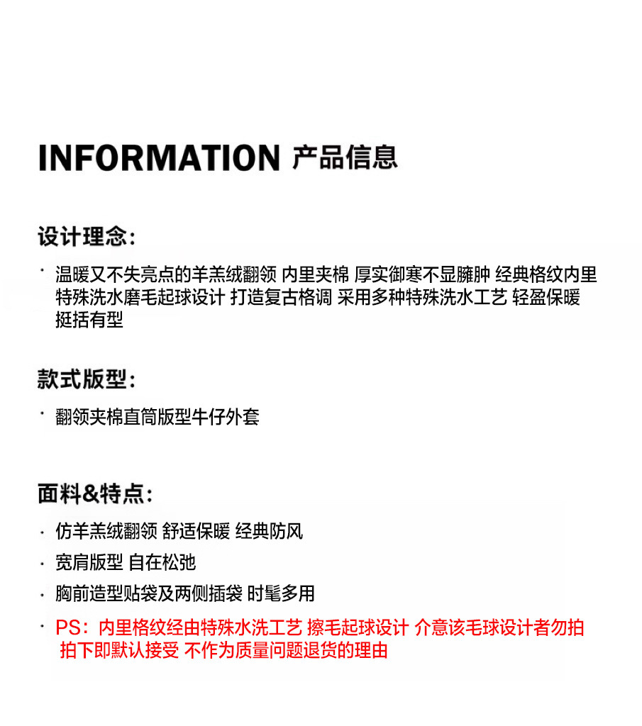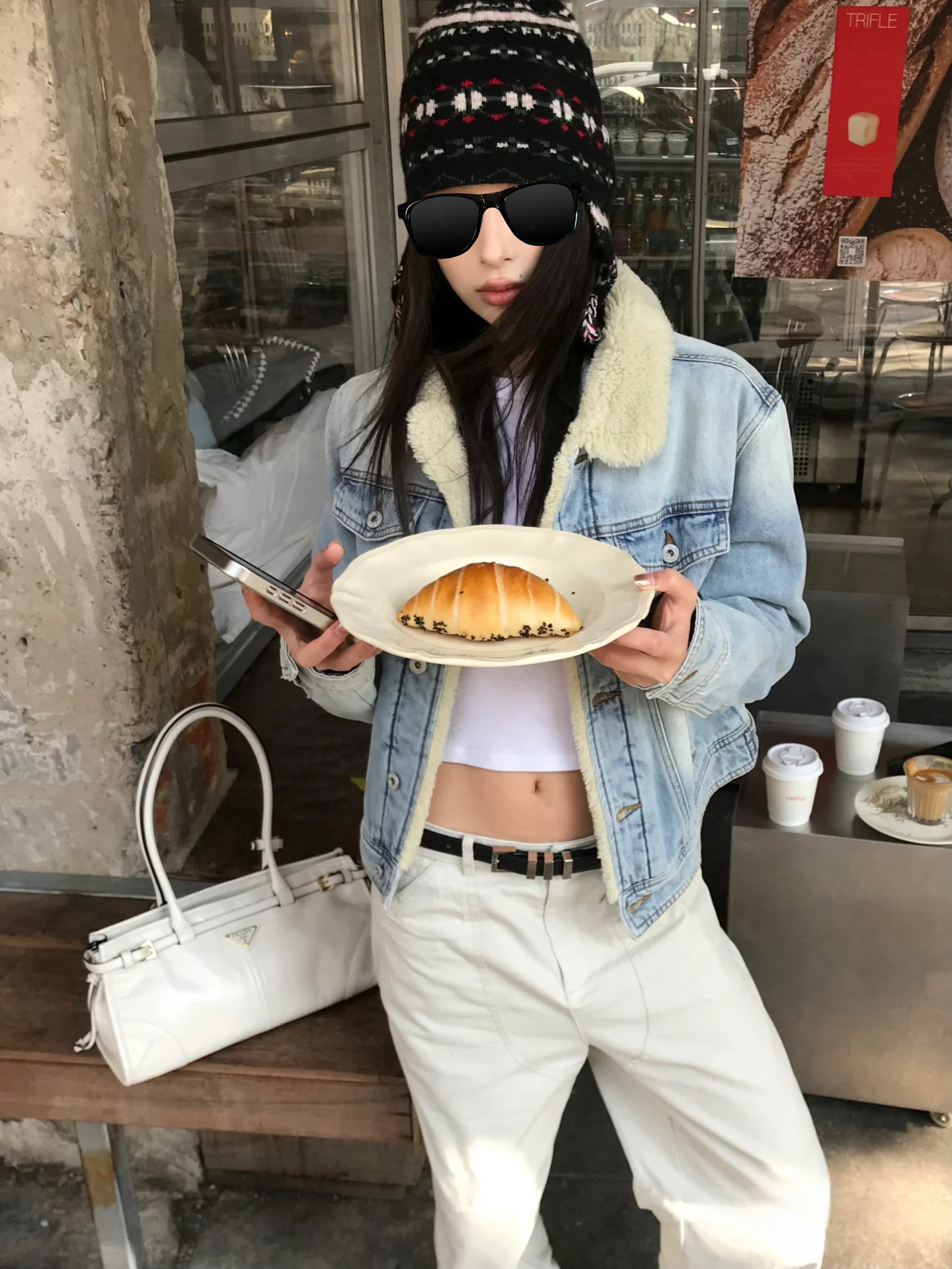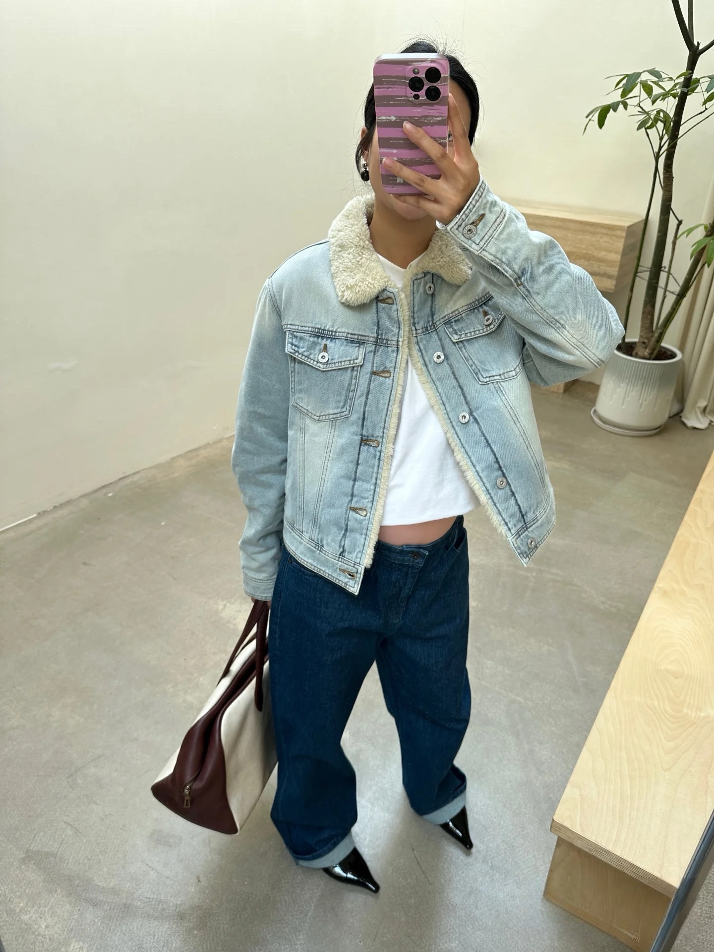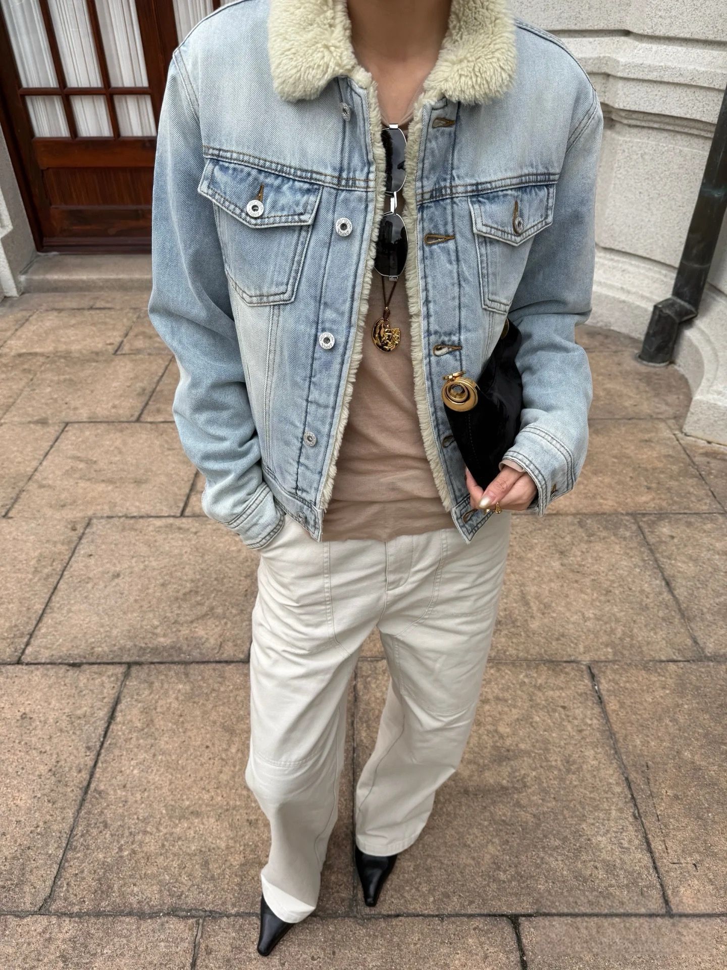 秋冬新款格纹内里加厚羊羔毛夹棉牛仔水洗复古棉服夹克外套女5023