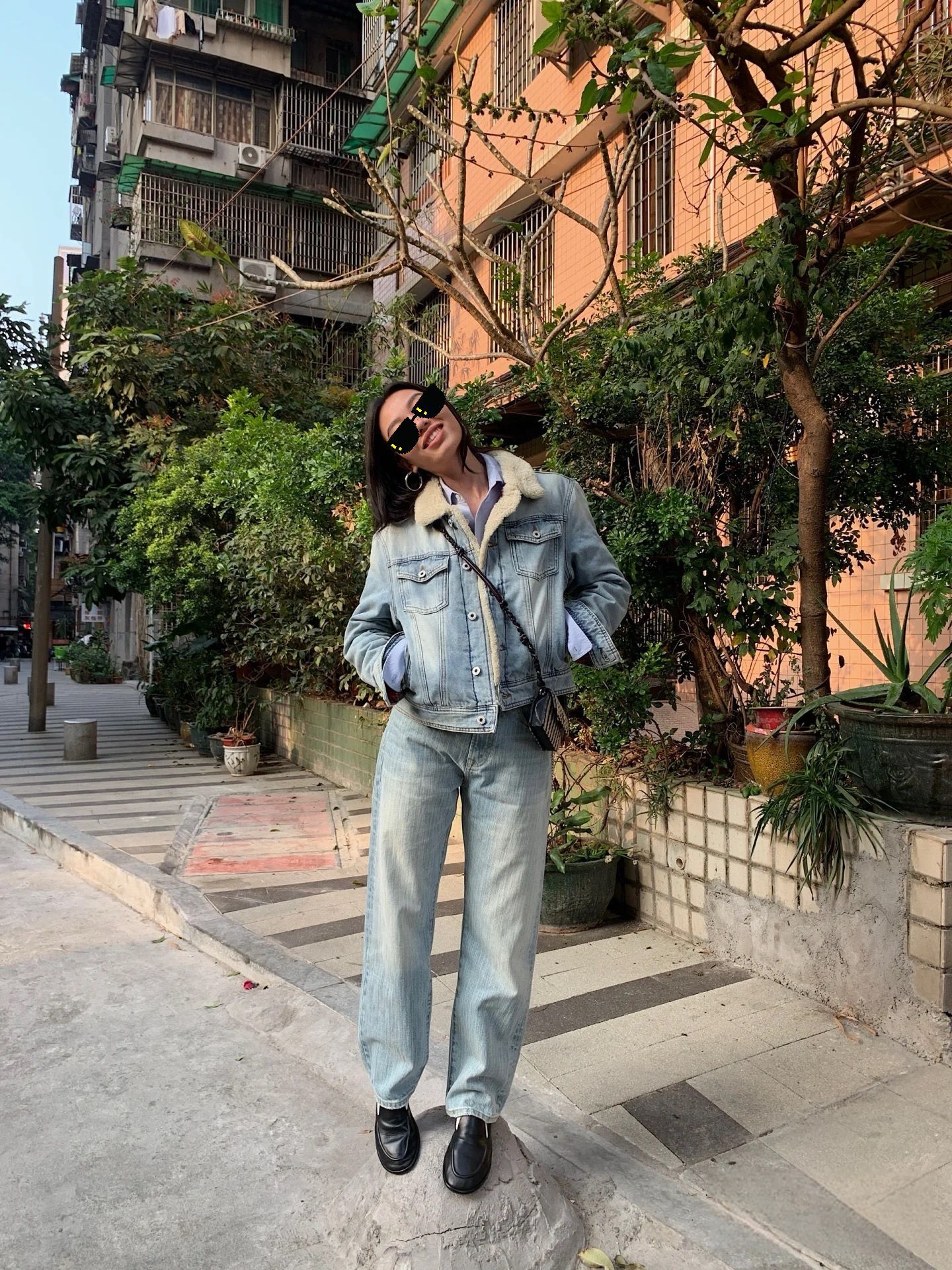 2024春秋新款韩国BF夹克牛仔上衣女港风大口袋宽松大码牛仔外套女