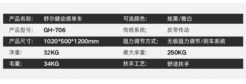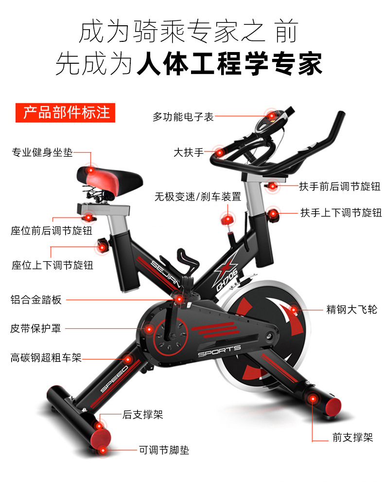 GH-706款动感单车家用健身器材静音健身车室内运动自行车有氧