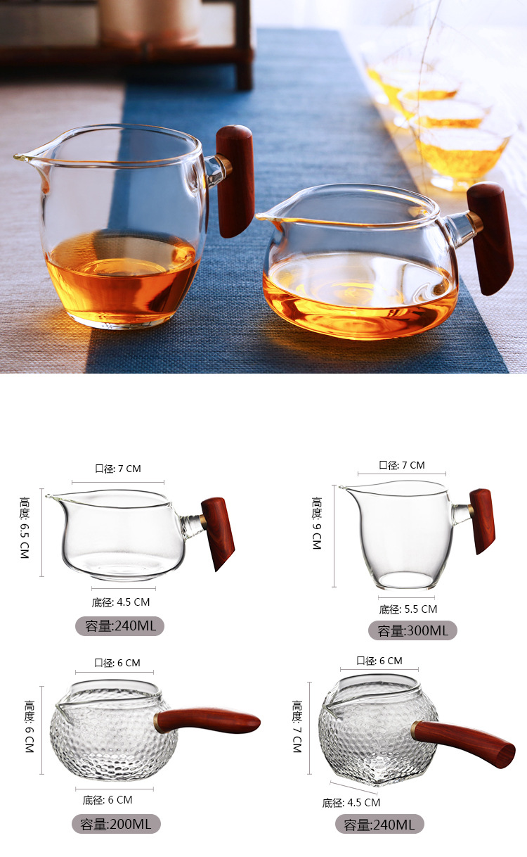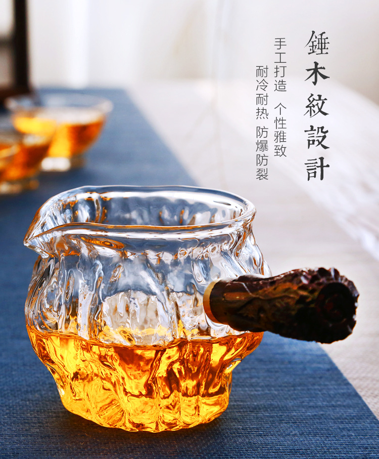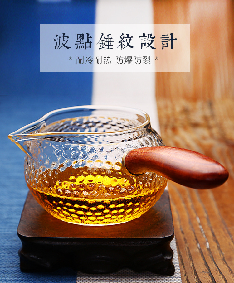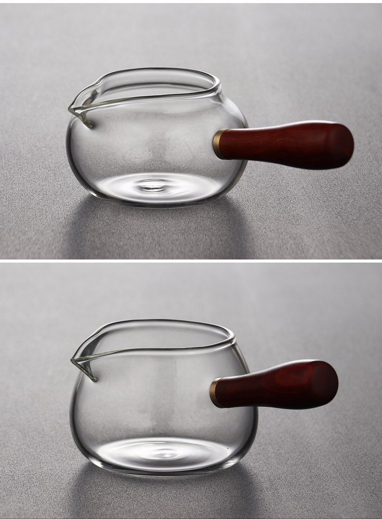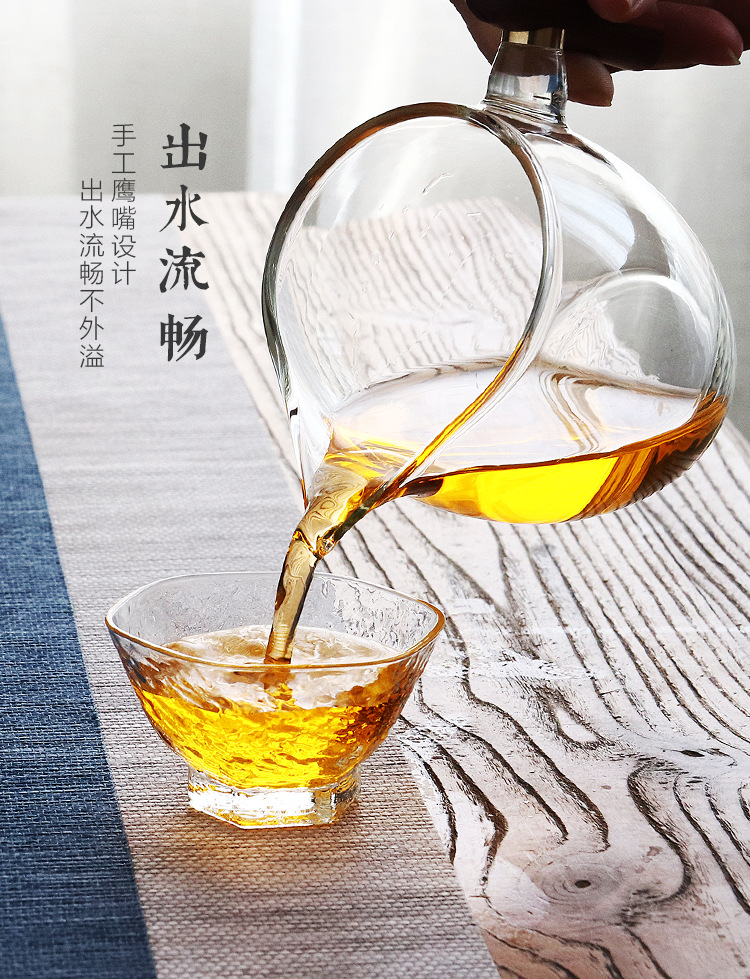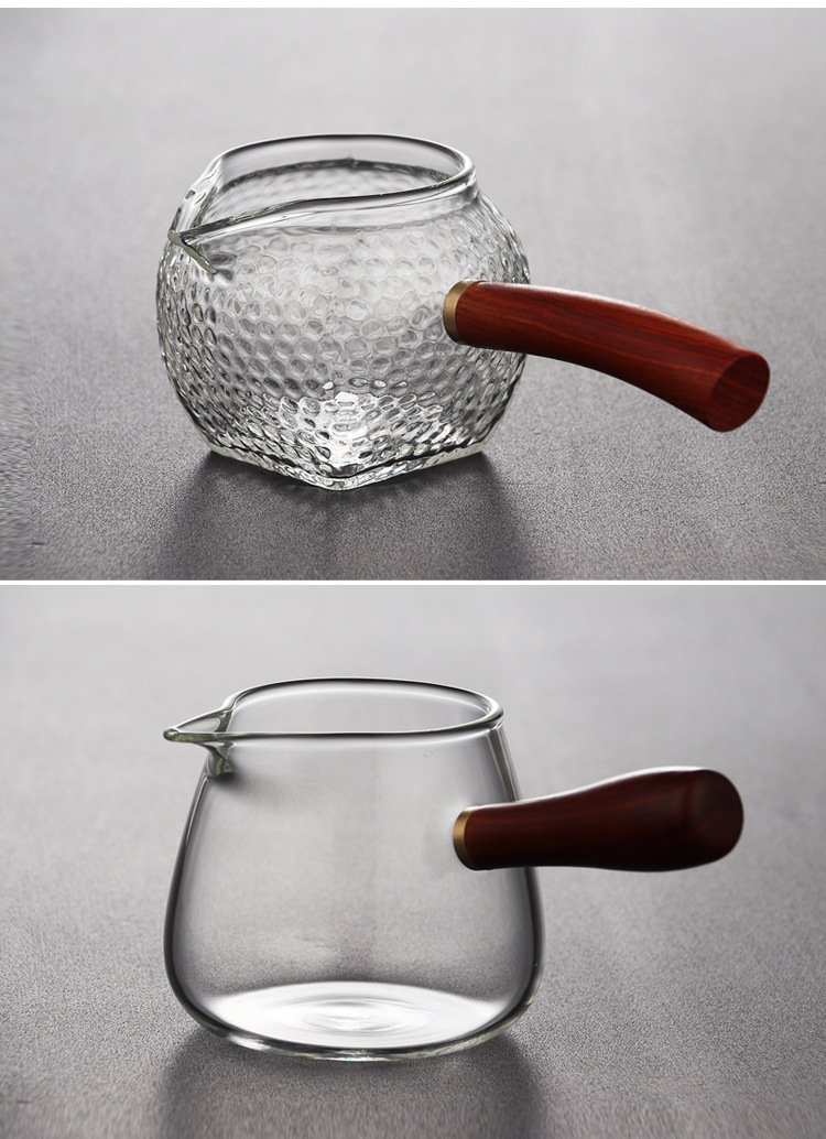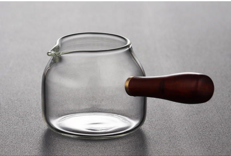 日式玻璃茶壶侧把木柄煮茶壶手工耐热玻璃茶壶锤纹玻璃透明茶壶