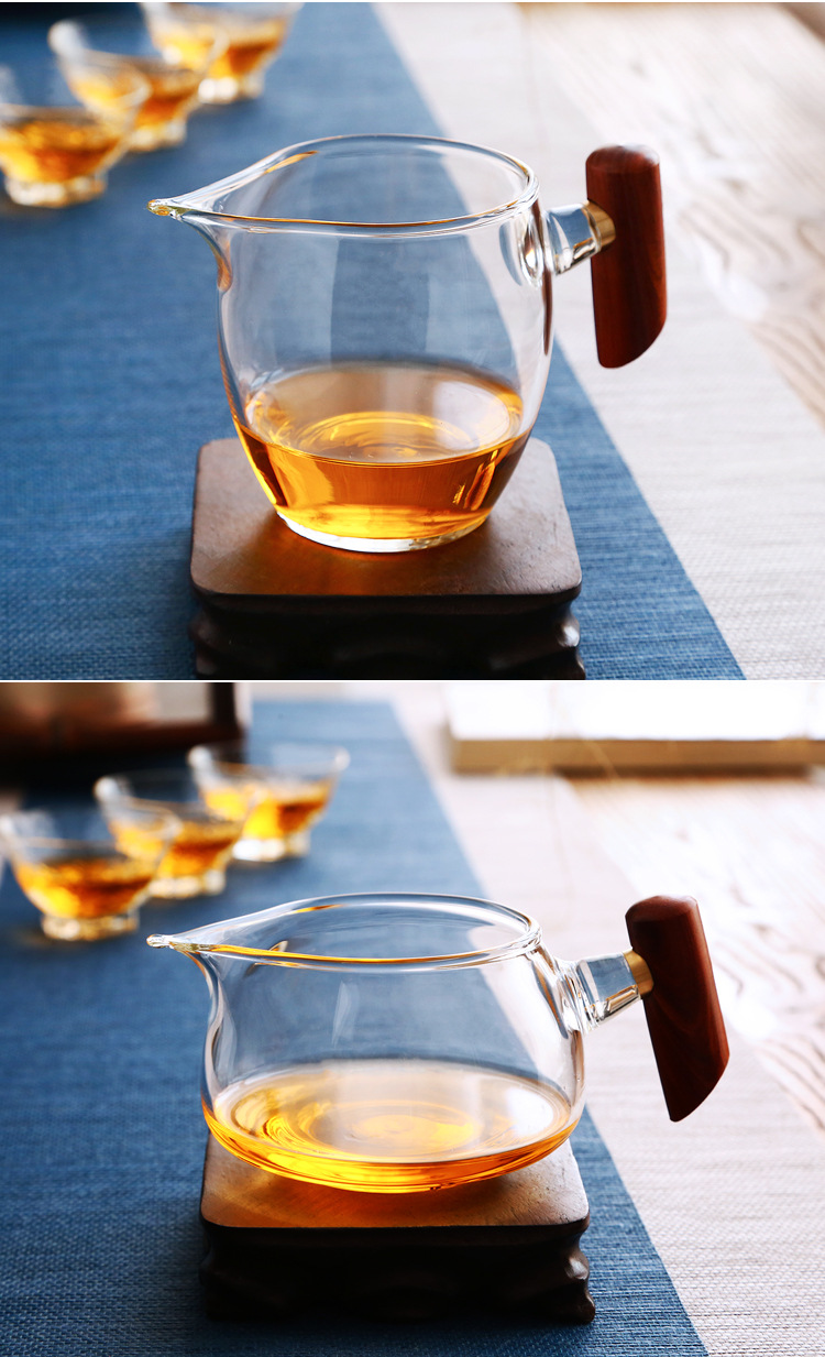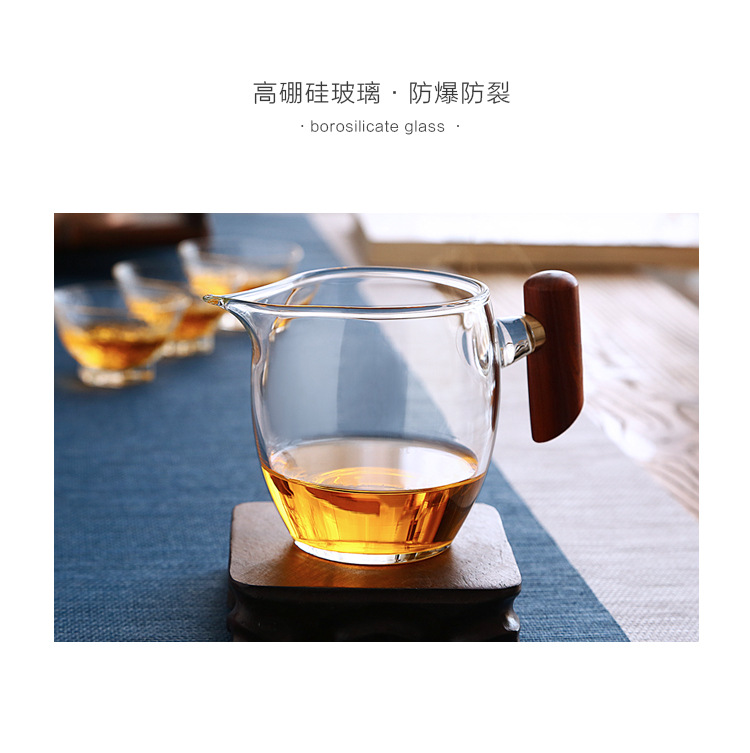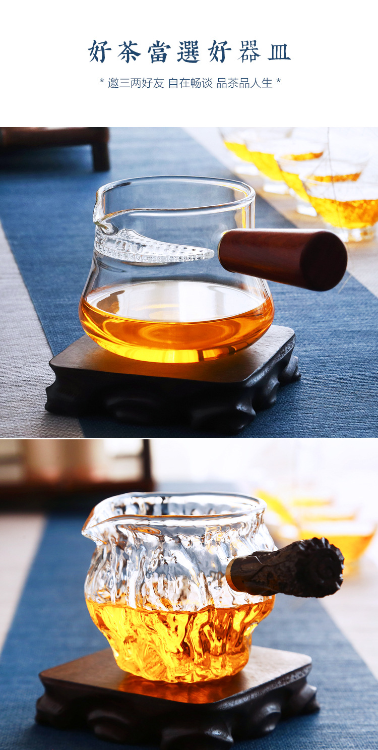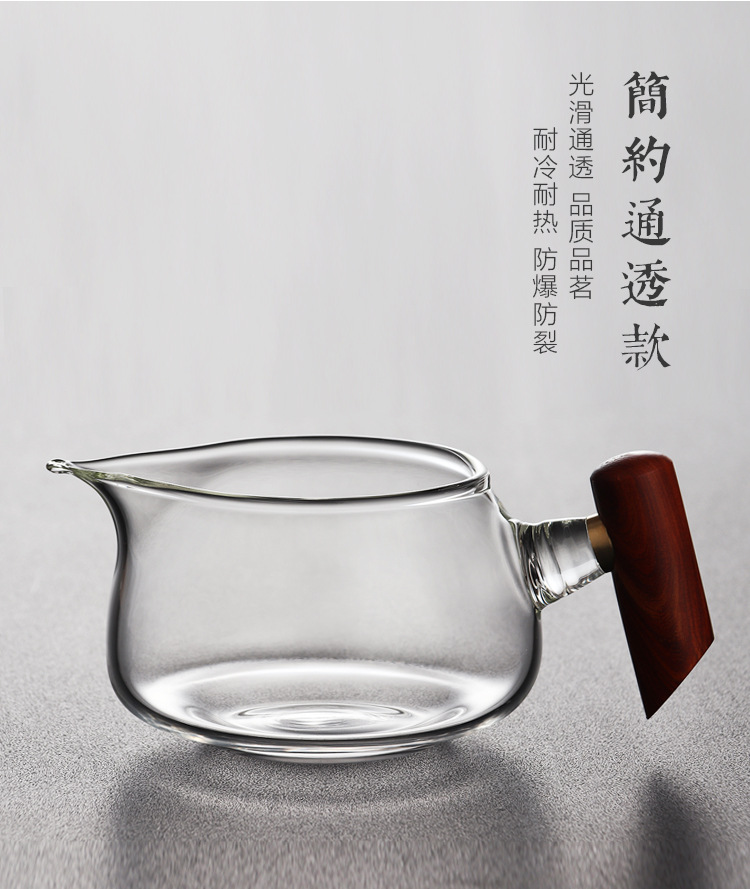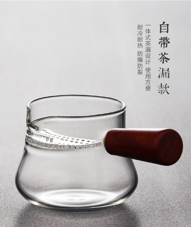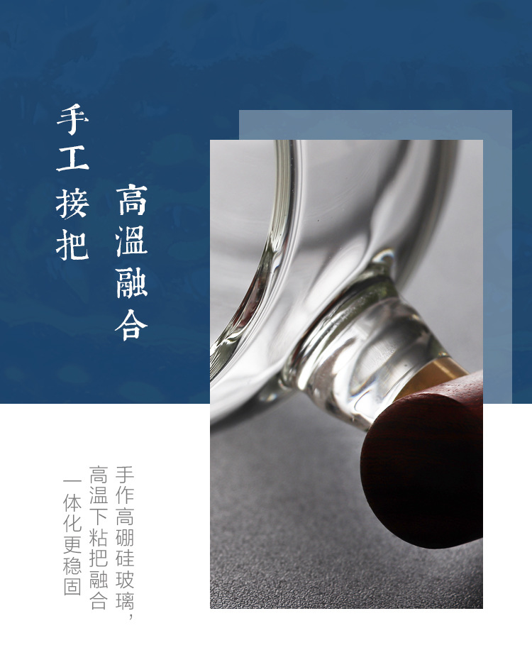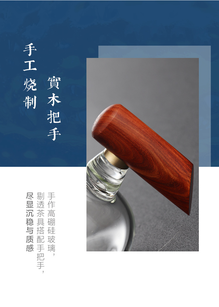 日式玻璃茶壶侧把木柄煮茶壶手工耐热玻璃茶壶锤纹玻璃透明茶壶