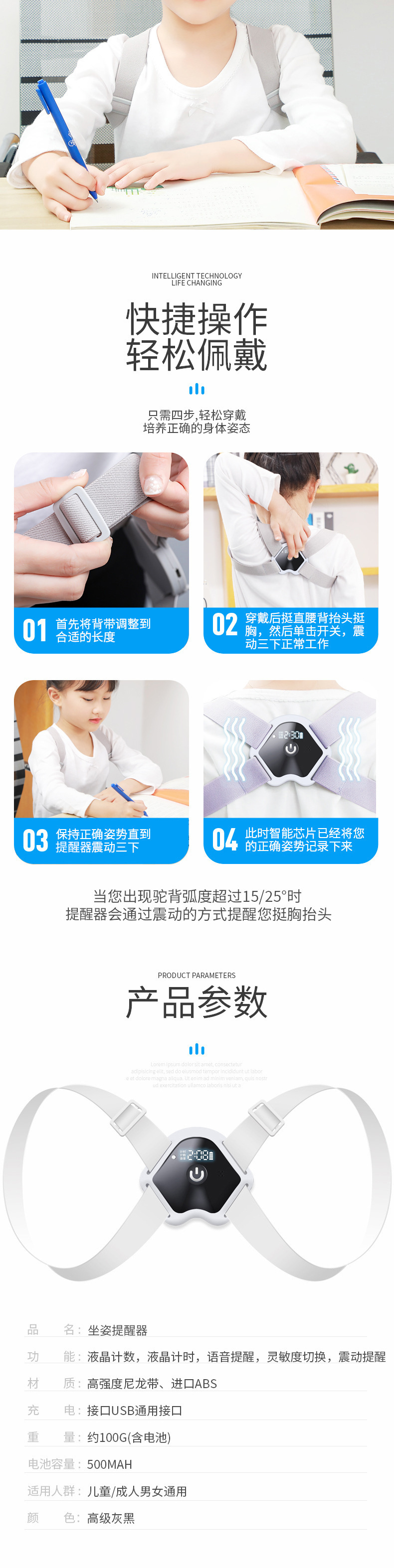 厂家矫姿智能矫正带辅助矫正器坐姿矫正背部姿势均码儿童液晶语音