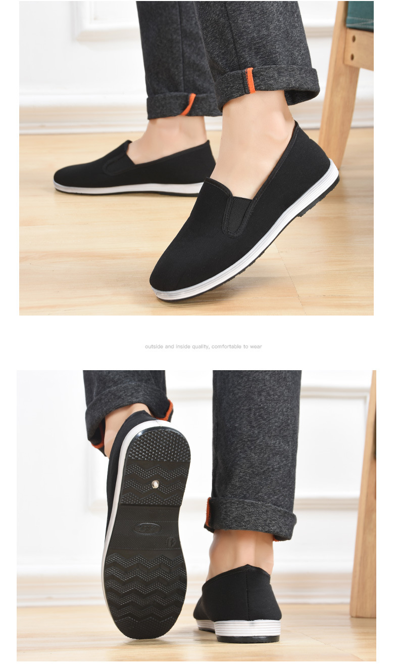 老北京布鞋男爸爸板鞋帆布工作鞋一脚蹬防滑开车夏天黑男网鞋简约