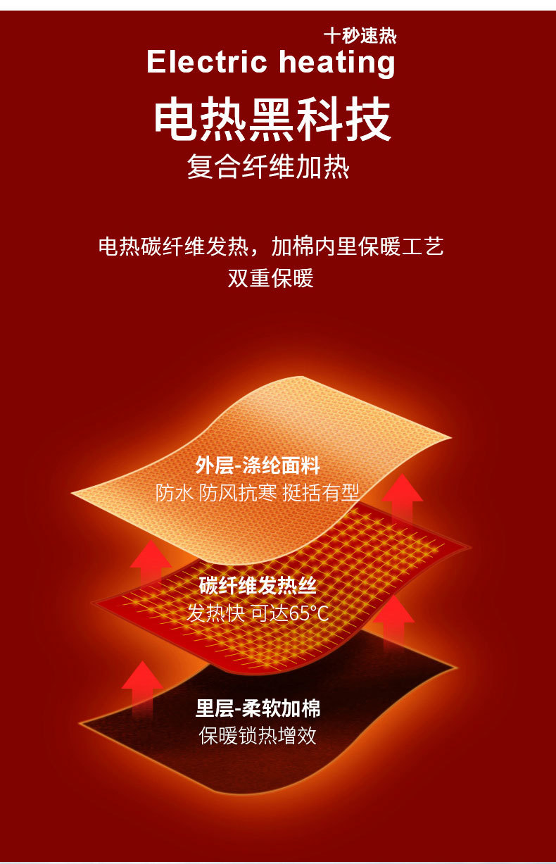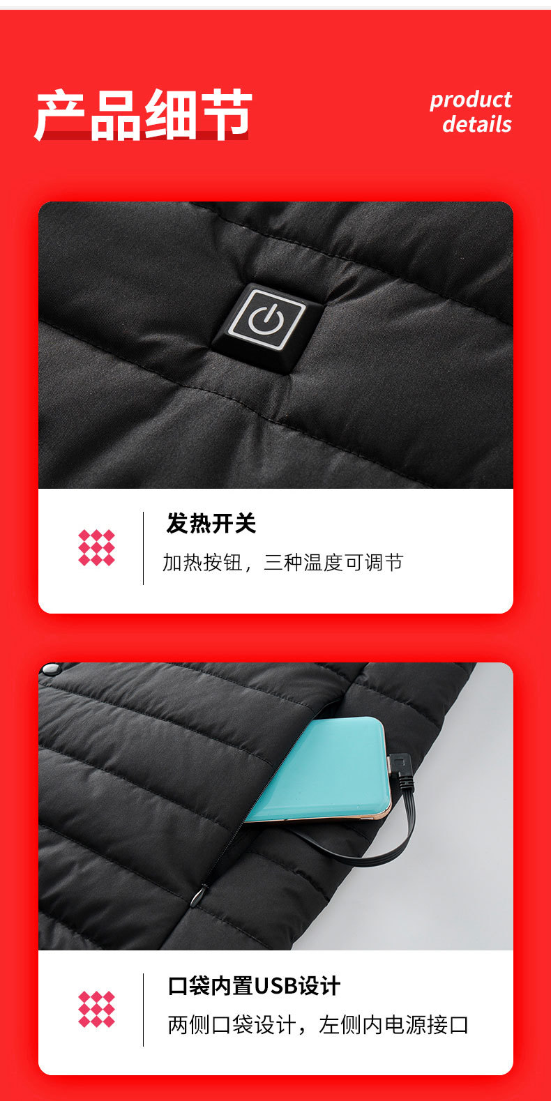 发热马甲背心智能恒温石墨烯加热棉马甲坎肩usb充电热潮流