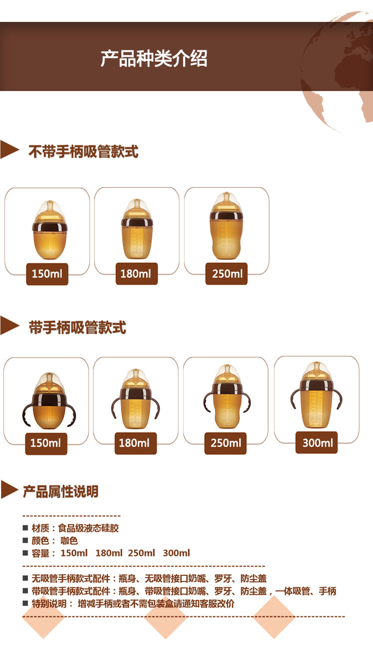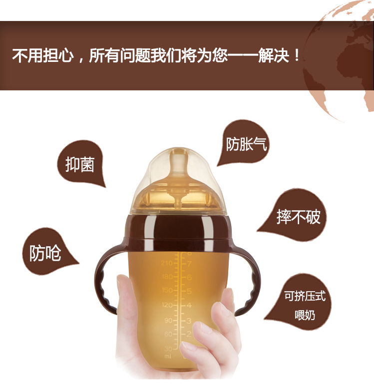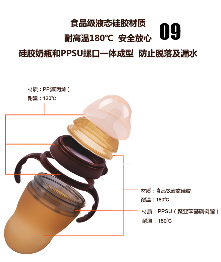 源头工厂贝克直销食品级液态硅胶奶瓶宽广口径150/180/250/300ML