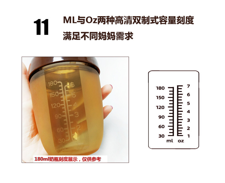 【印刻度】180ML纳米银奶瓶不带手柄吸管