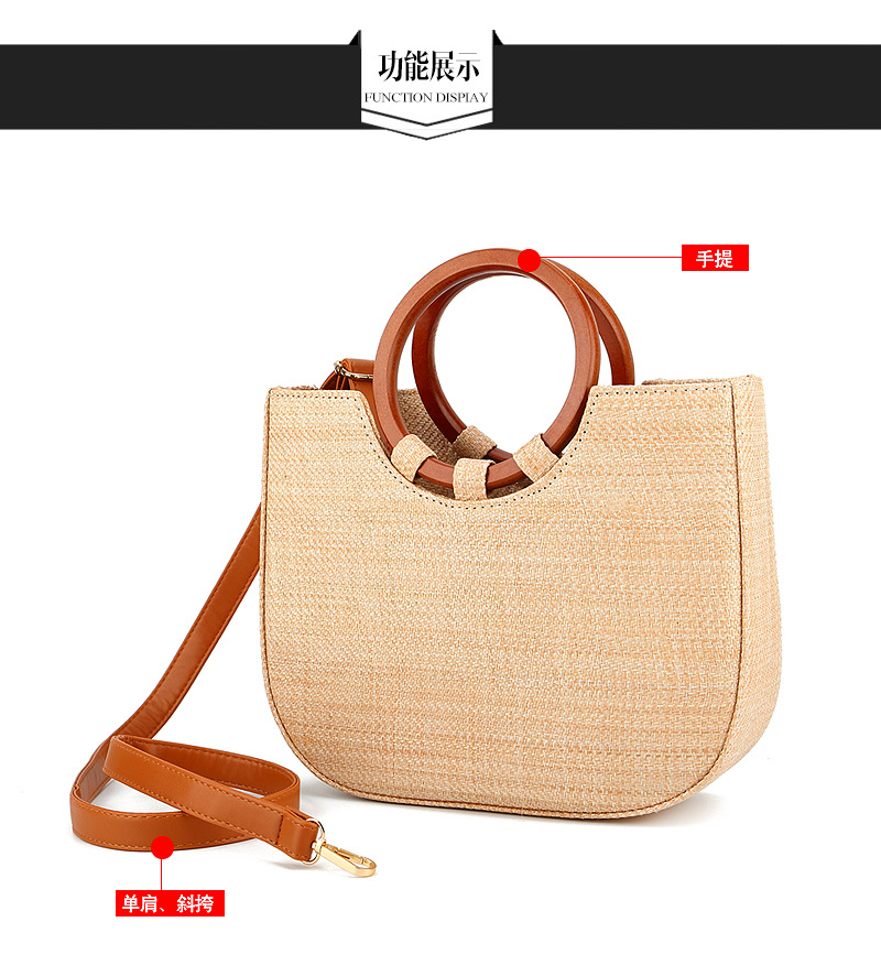 女款手提草编包半圆手拎袋草编日韩东南亚都市休闲度假沙滩编织包