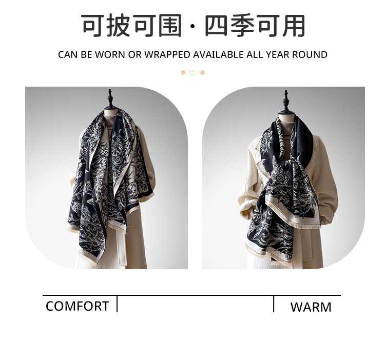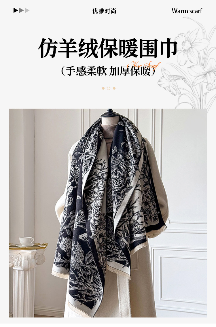 新款法式复古蝴蝶高级感仿羊绒围巾女秋冬季加厚外搭保暖办公披肩
