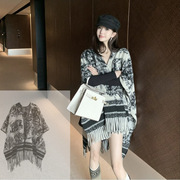 新款水墨画披肩高级感旅游装饰外搭披肩长款复古斗篷流苏披风穿搭