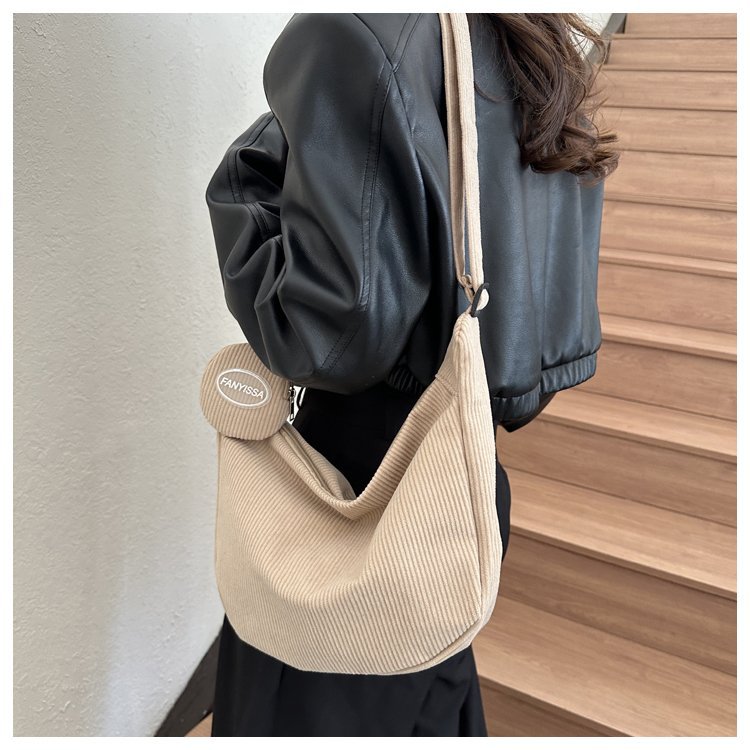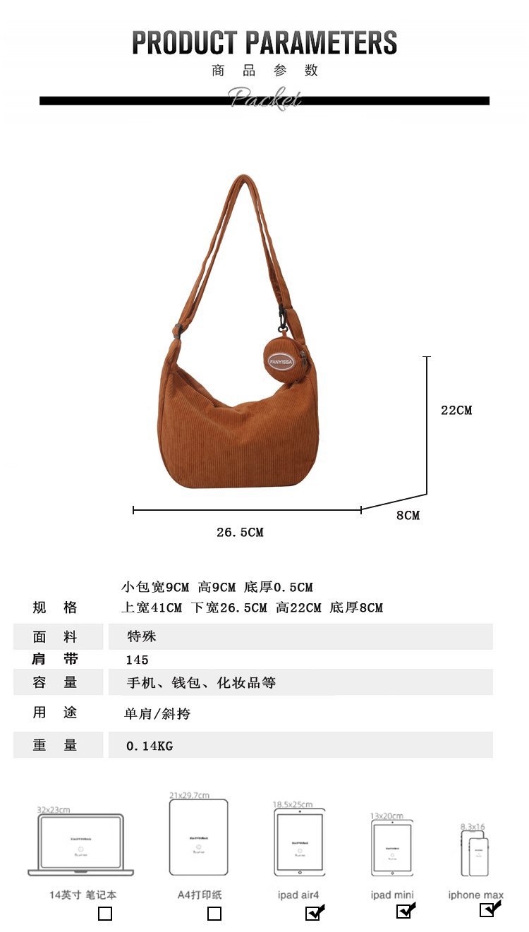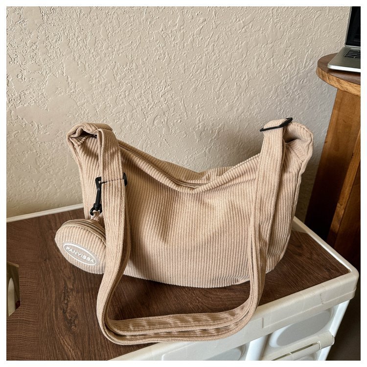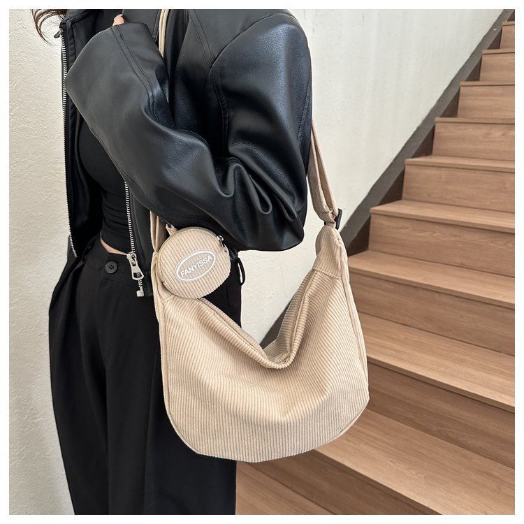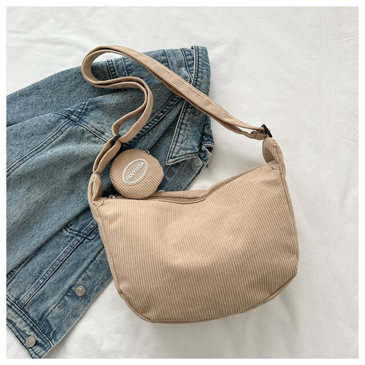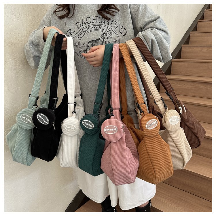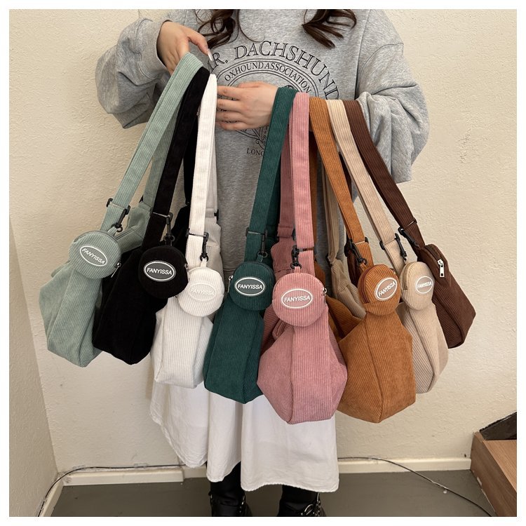 胸包女2021新款潮ins质感斜挎小包包日韩运动腰包学生条绒单肩包