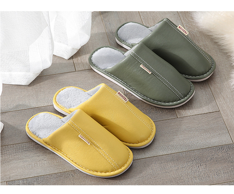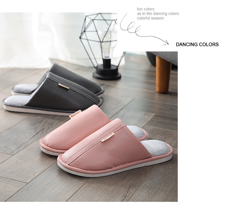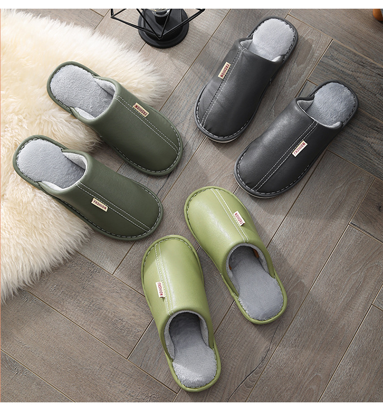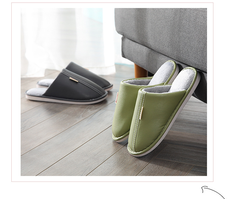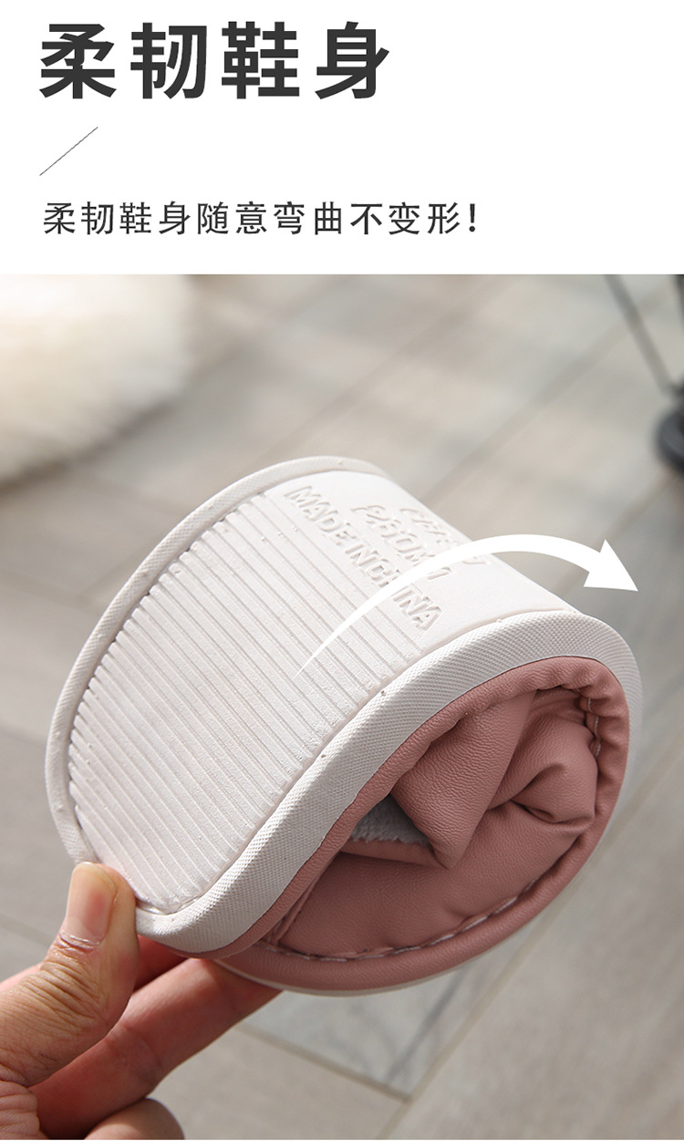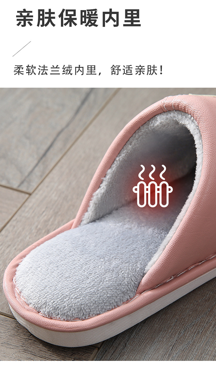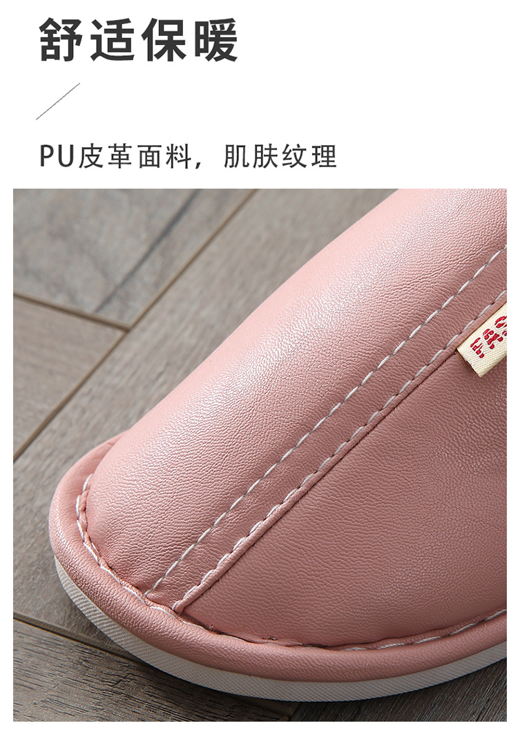 PU皮棉拖鞋男士家用防水厚底保暖室内情侣冬天家居毛拖鞋女秋冬季