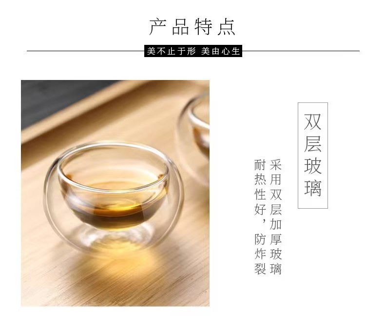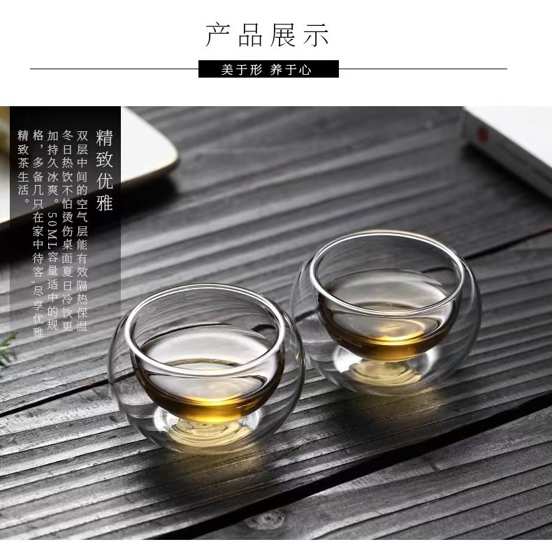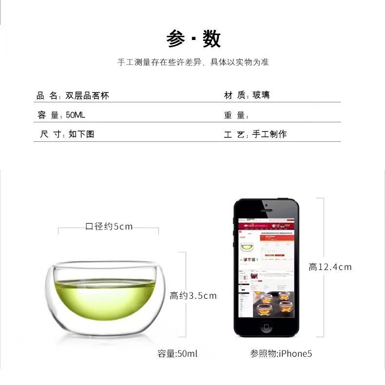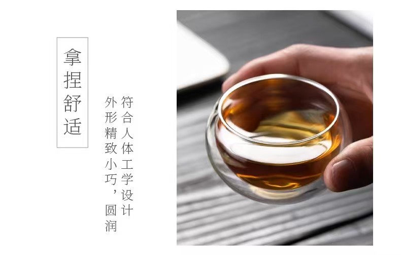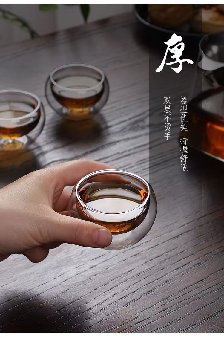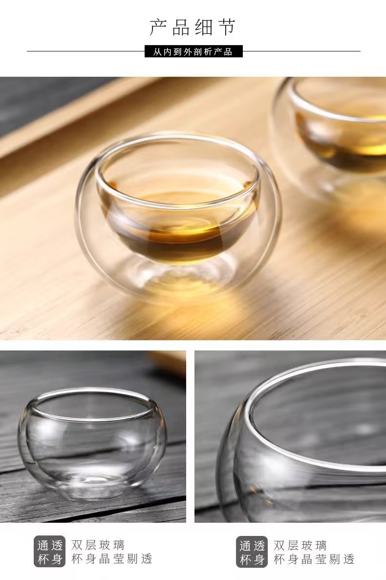加厚耐热玻璃双层隔热透明小品杯喝茶杯子主人杯茶具保温功夫茶杯