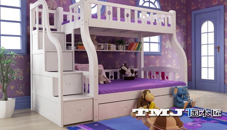厂家实木子母床 供应简约时尚实木儿童床 高低子母床