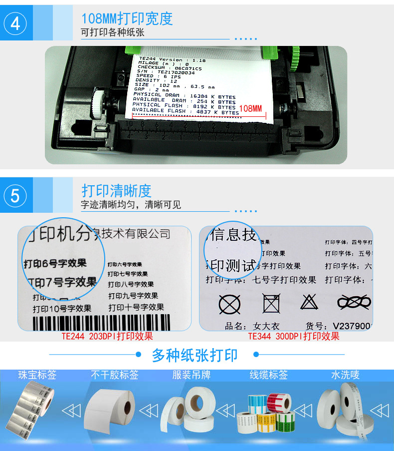 TSC标签打印机TE244/344条码打印机蓝牙不干胶贴纸价格标签打印机