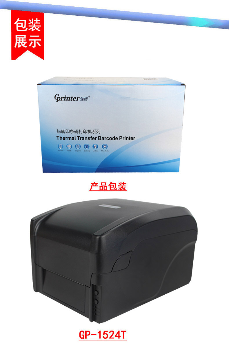 佳博GP1524T条码标签打印机蓝牙不干胶标签贴纸碳带打印机